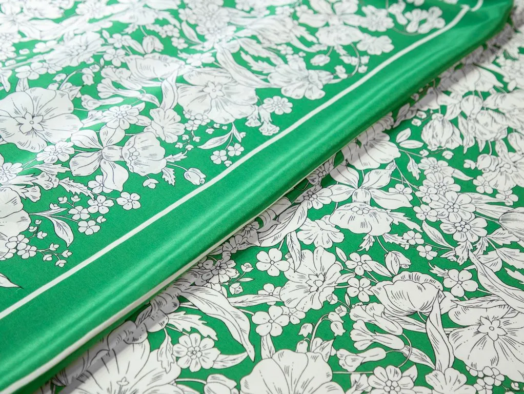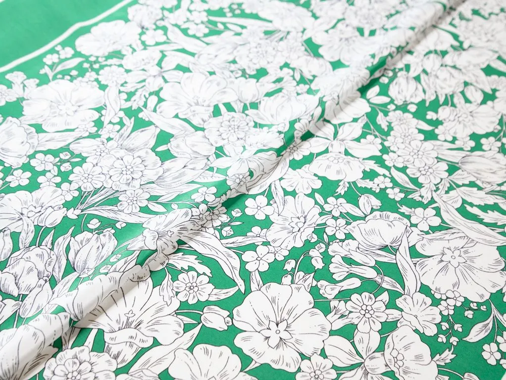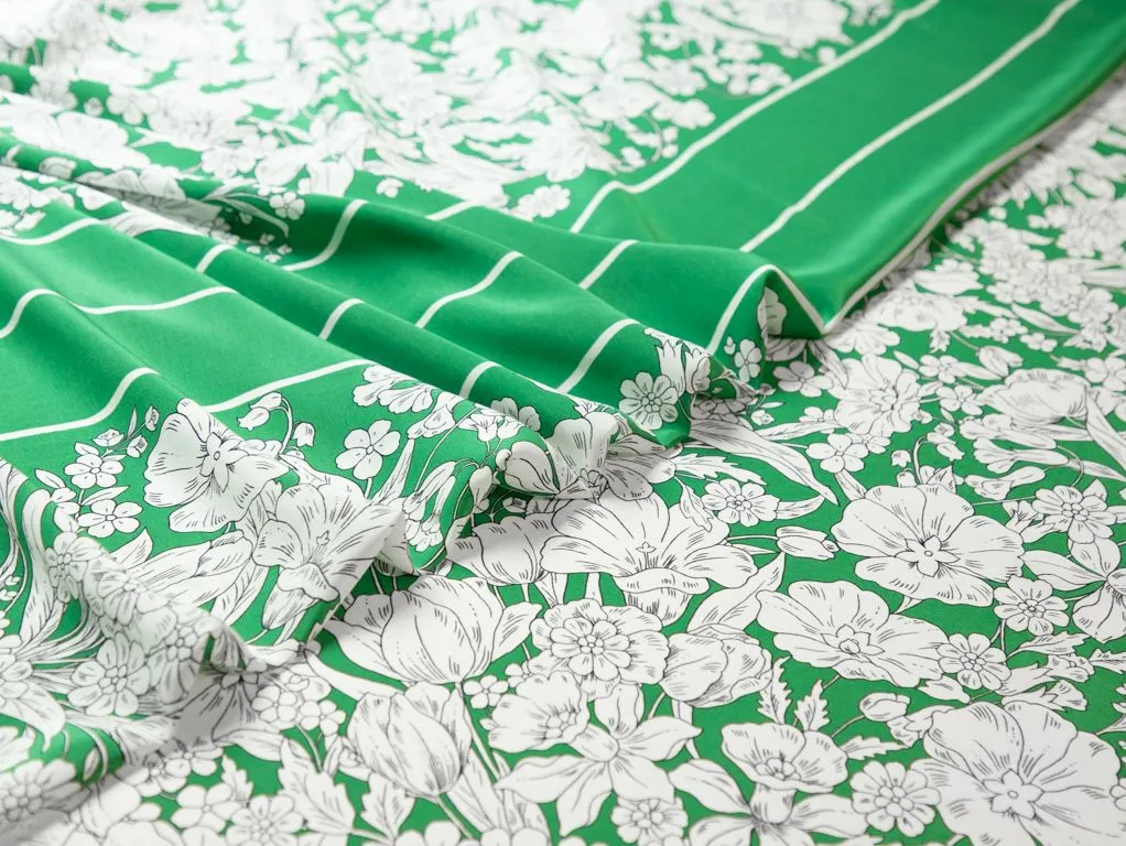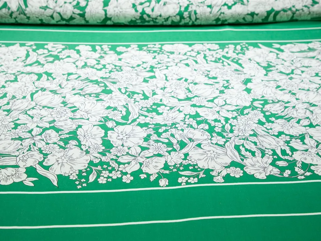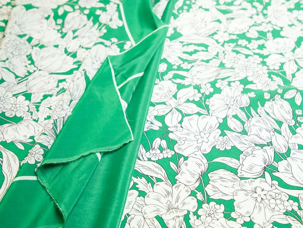 Купонный шелк зеленого цвета с цветочным принтом, раппорт 0,75м
