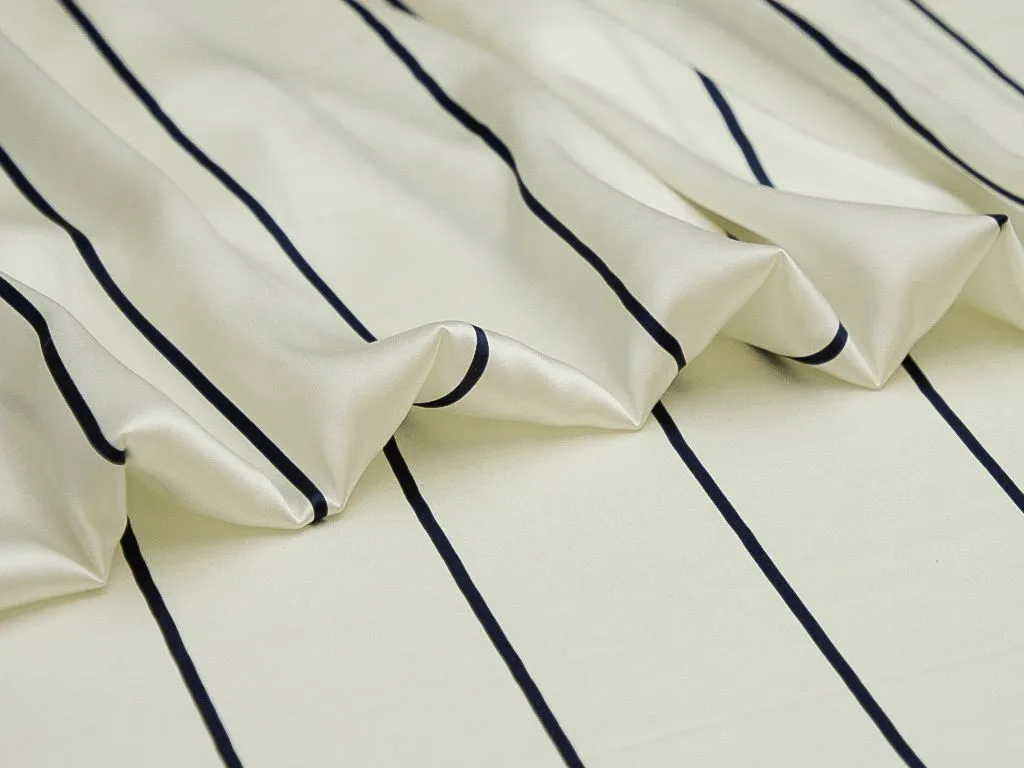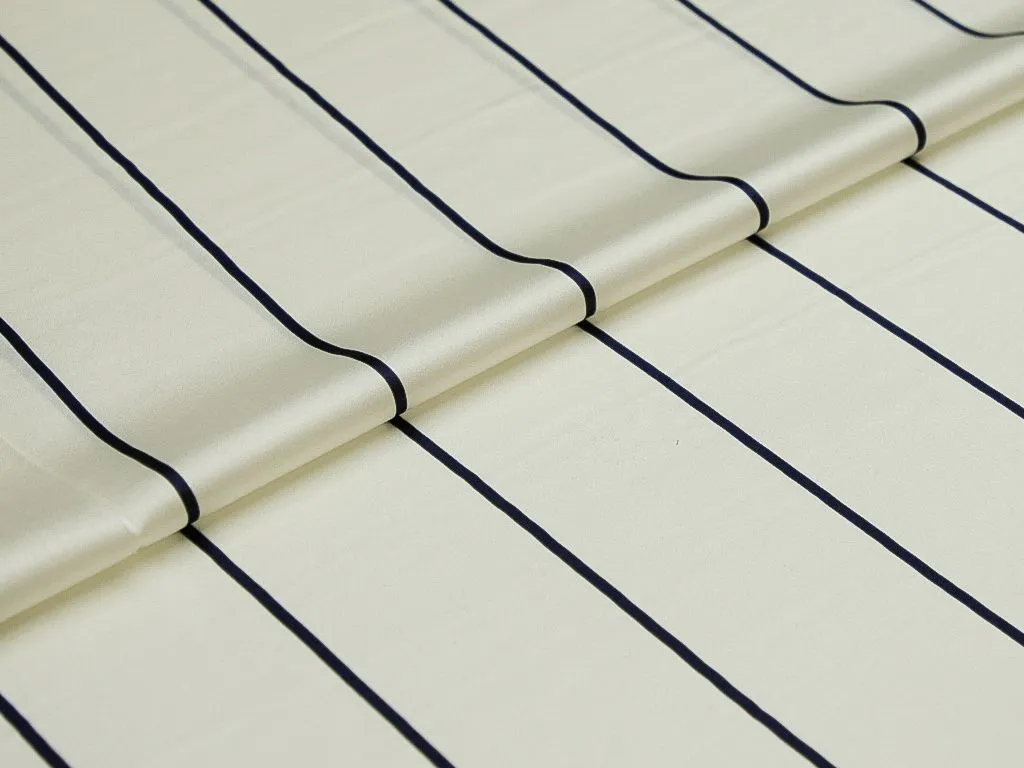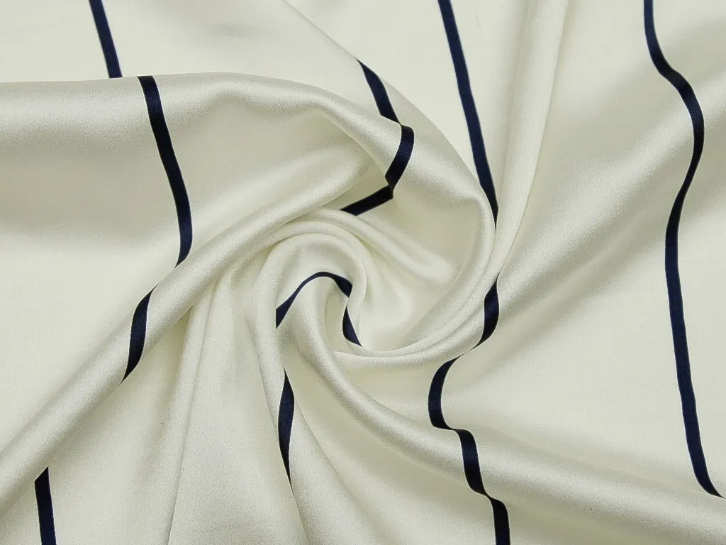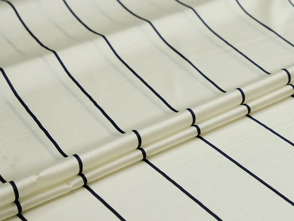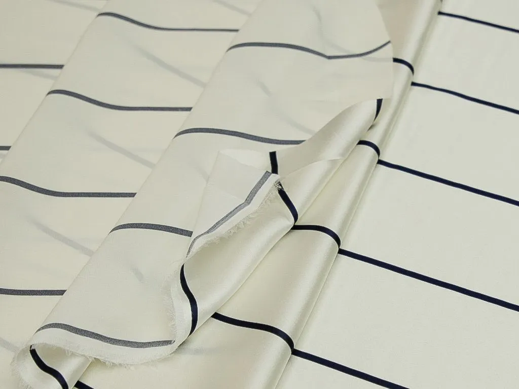 Шёлк, на белом фоне тёмно-синие полоски