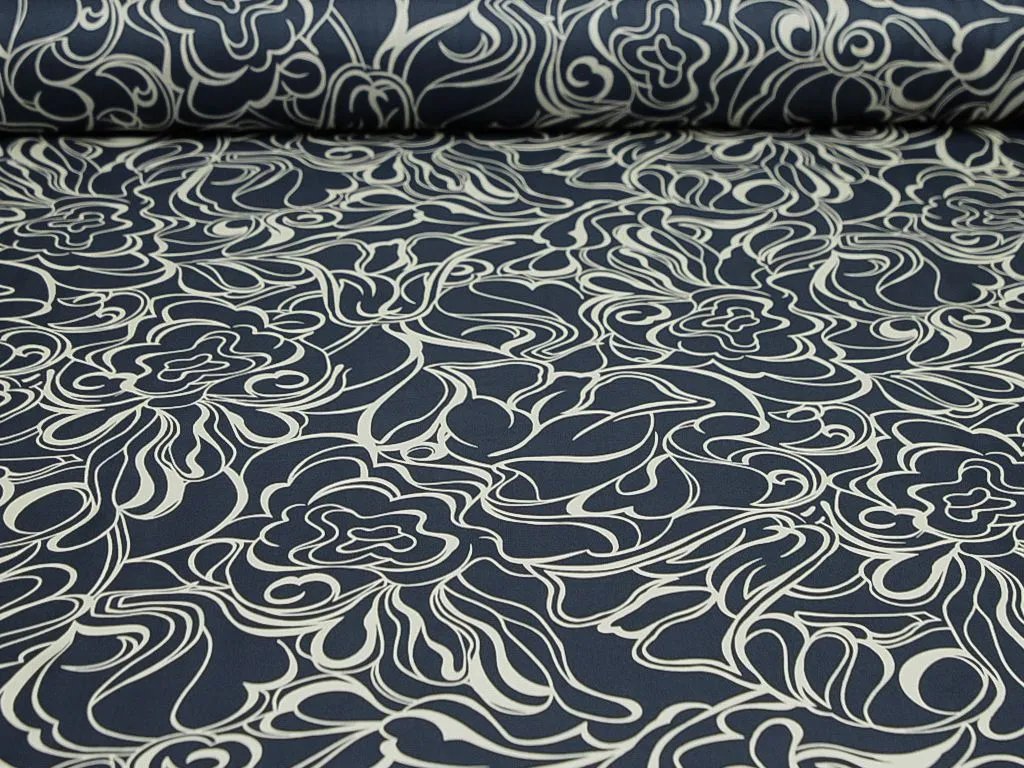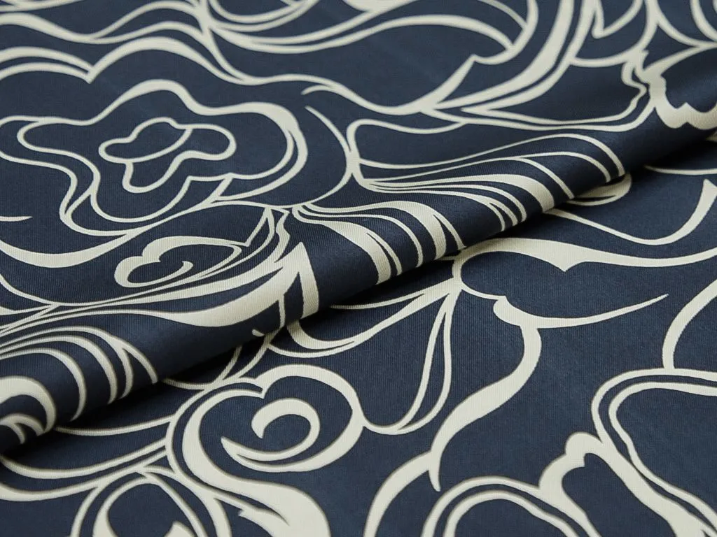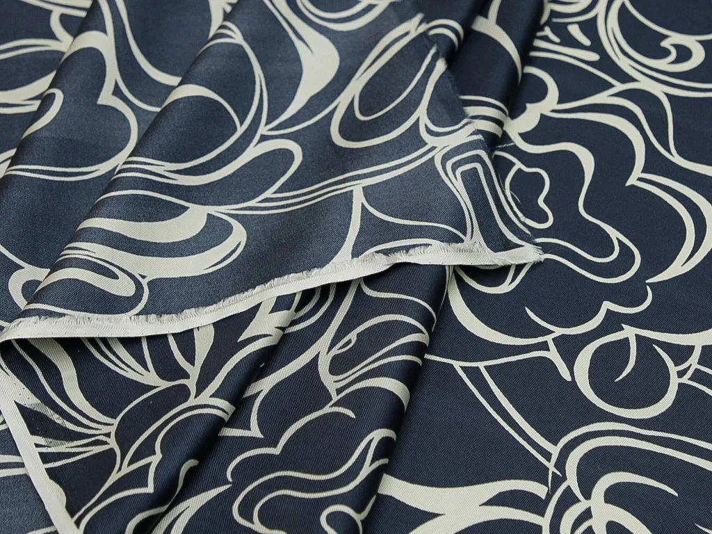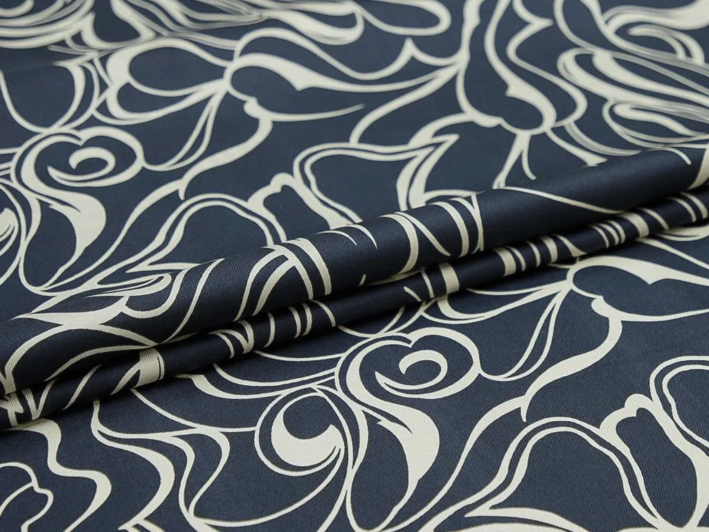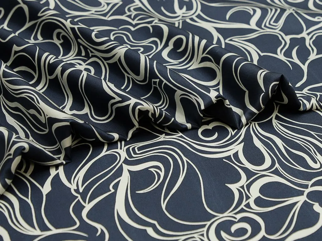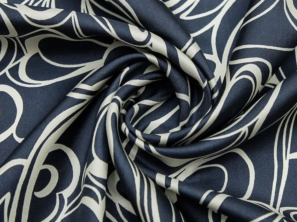 Шёлк в сине-белых тонах, с абстрактным рисунком