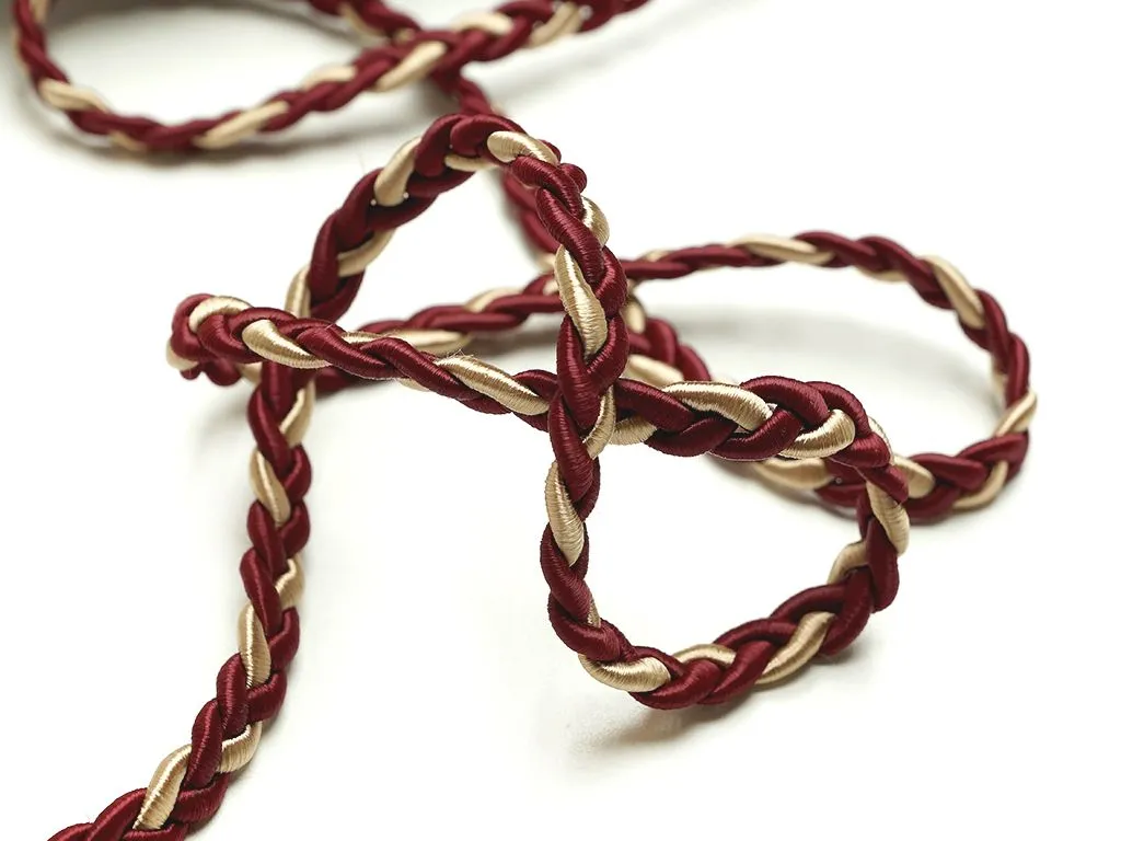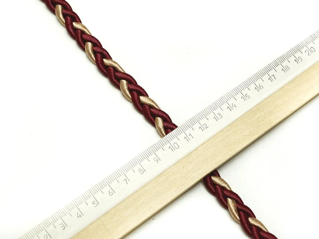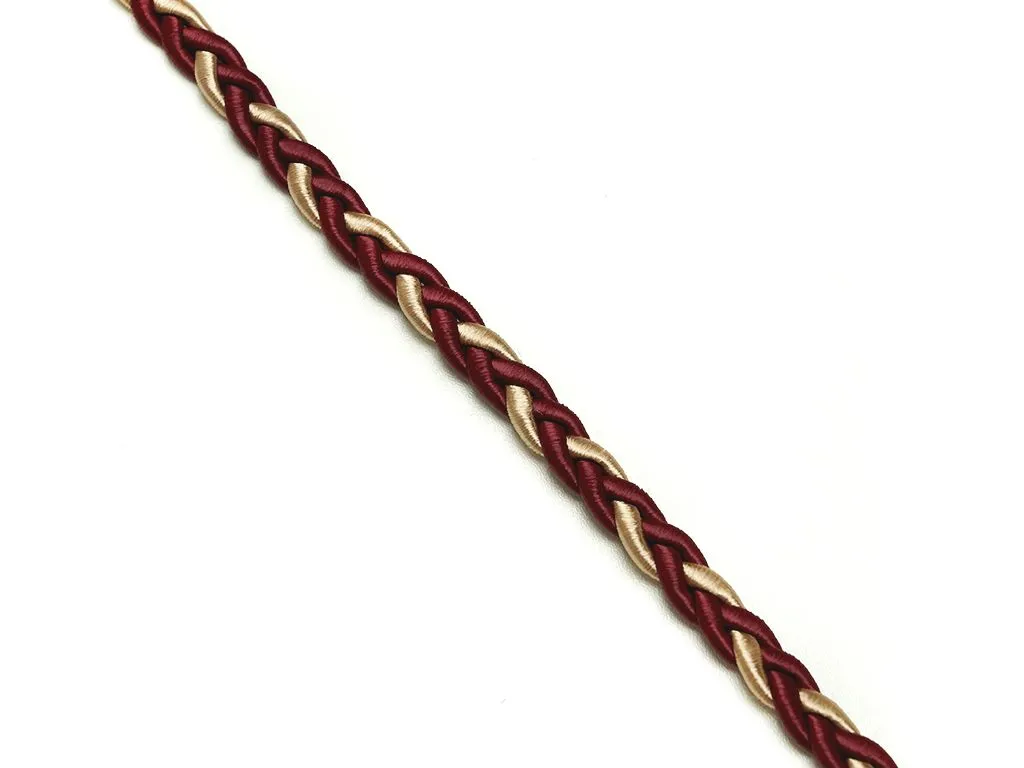 Шнур-косичка, бордо/какао, ширина 10 мм