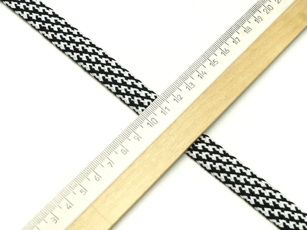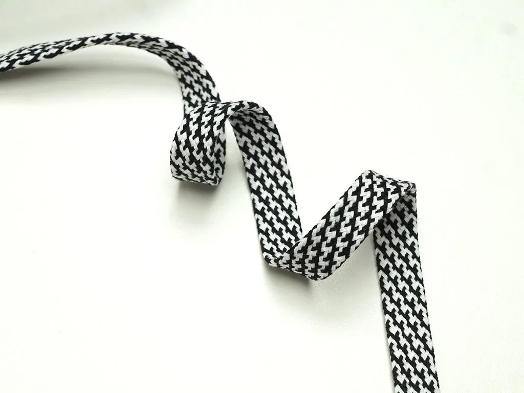 Шнур плоский, плетеный, чёрно-белая клетка, ширина 15 мм
