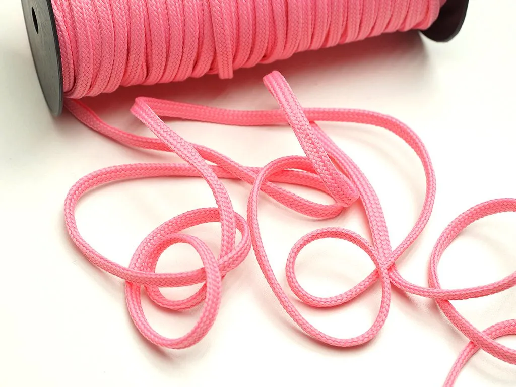 Шнур плоский, плетеный, розового цвета, ширина 7 мм
