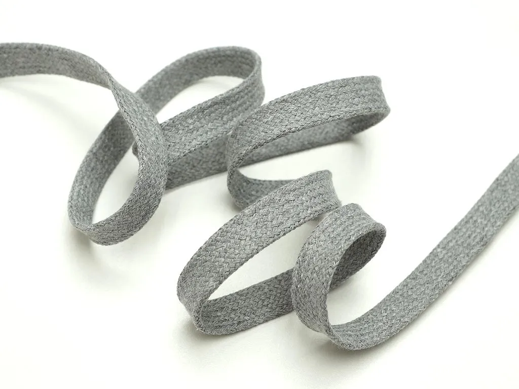 Шнур плоский, плетеный, серого цвета, ширина 15 мм