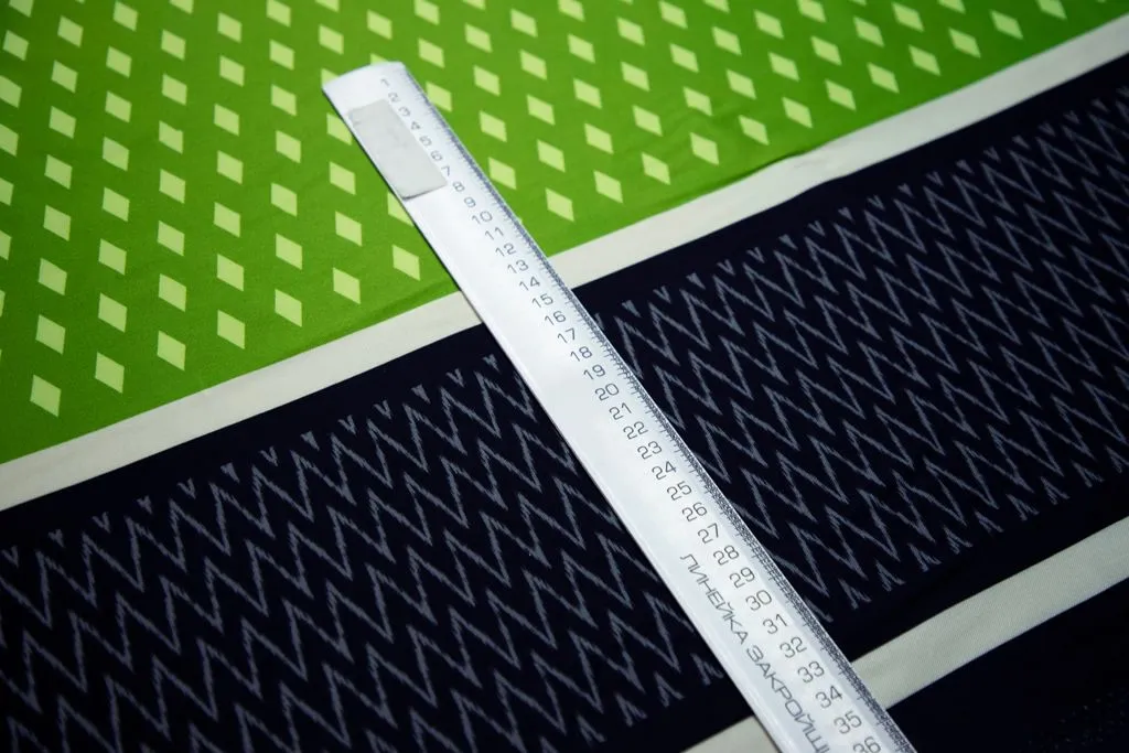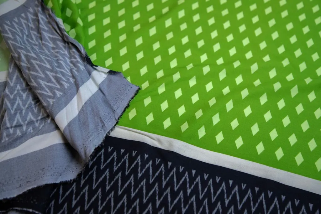 Штапель с геометрическим рисунком и бордюром, цвет черно-зеленый ALIITA