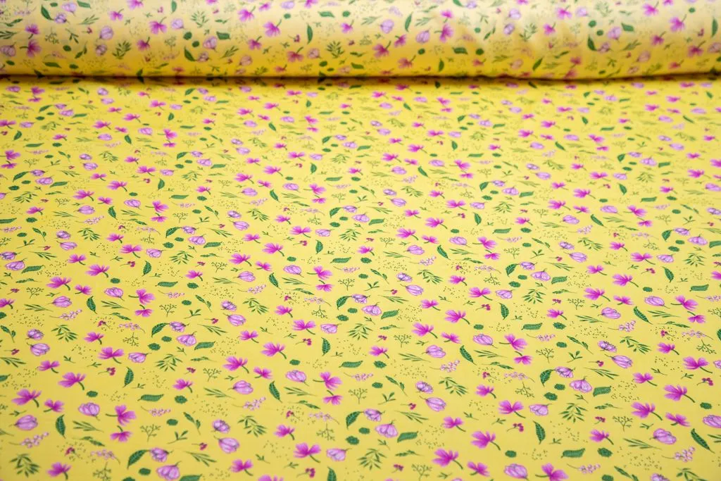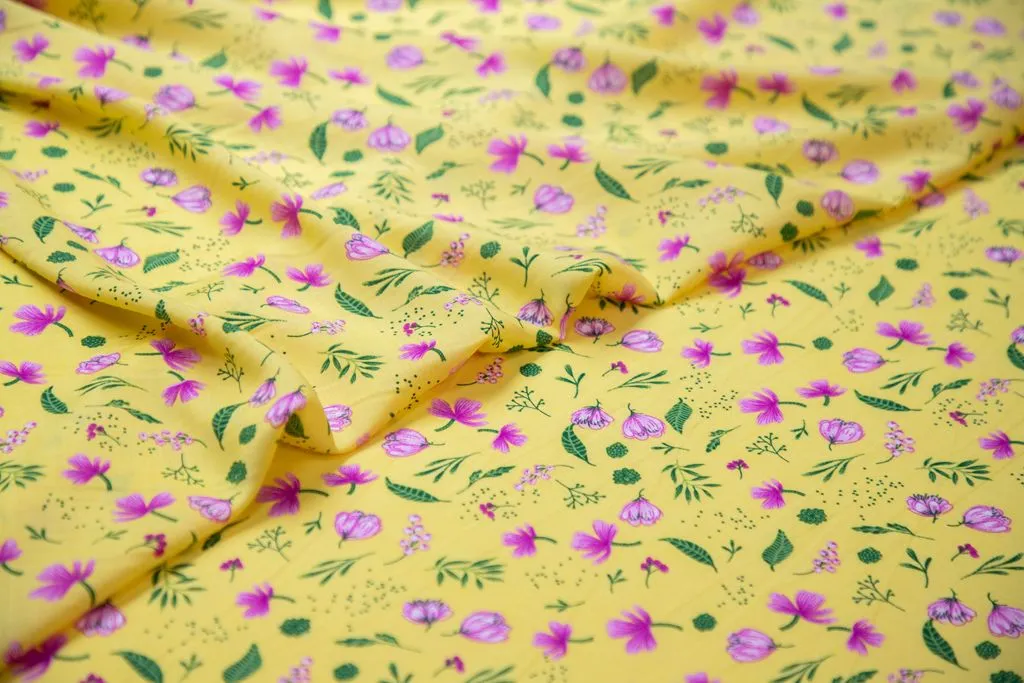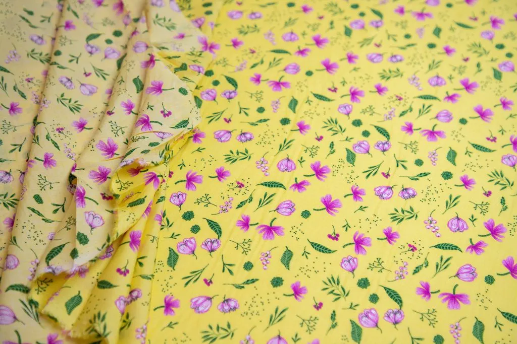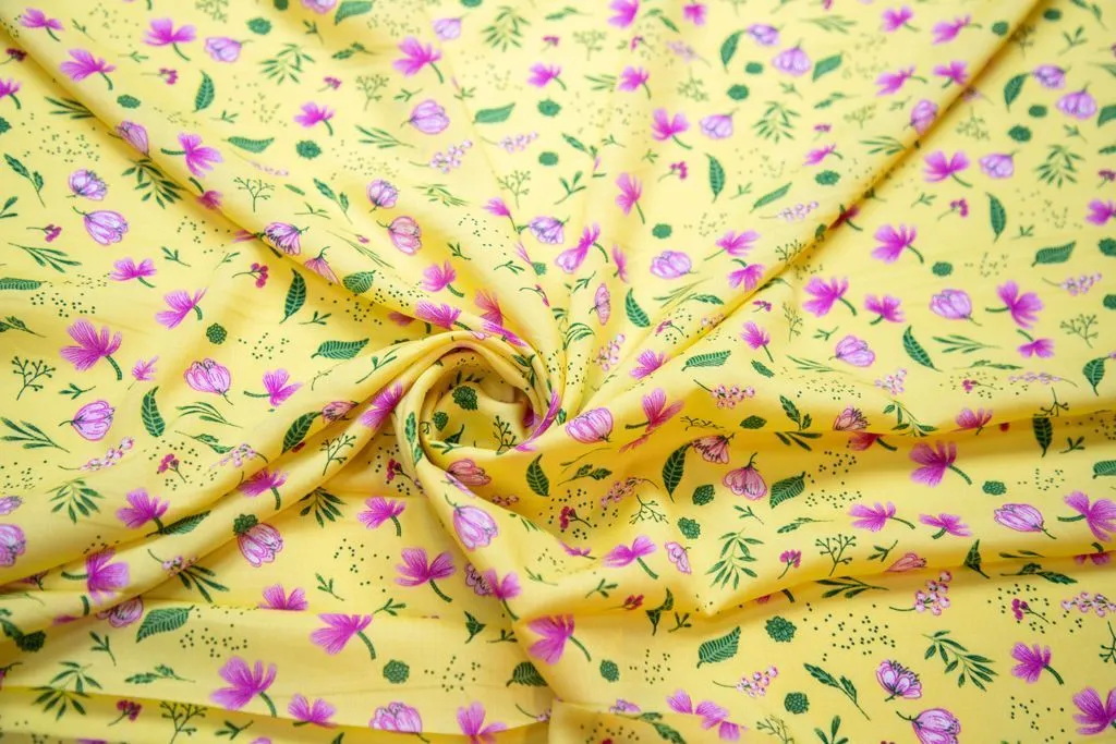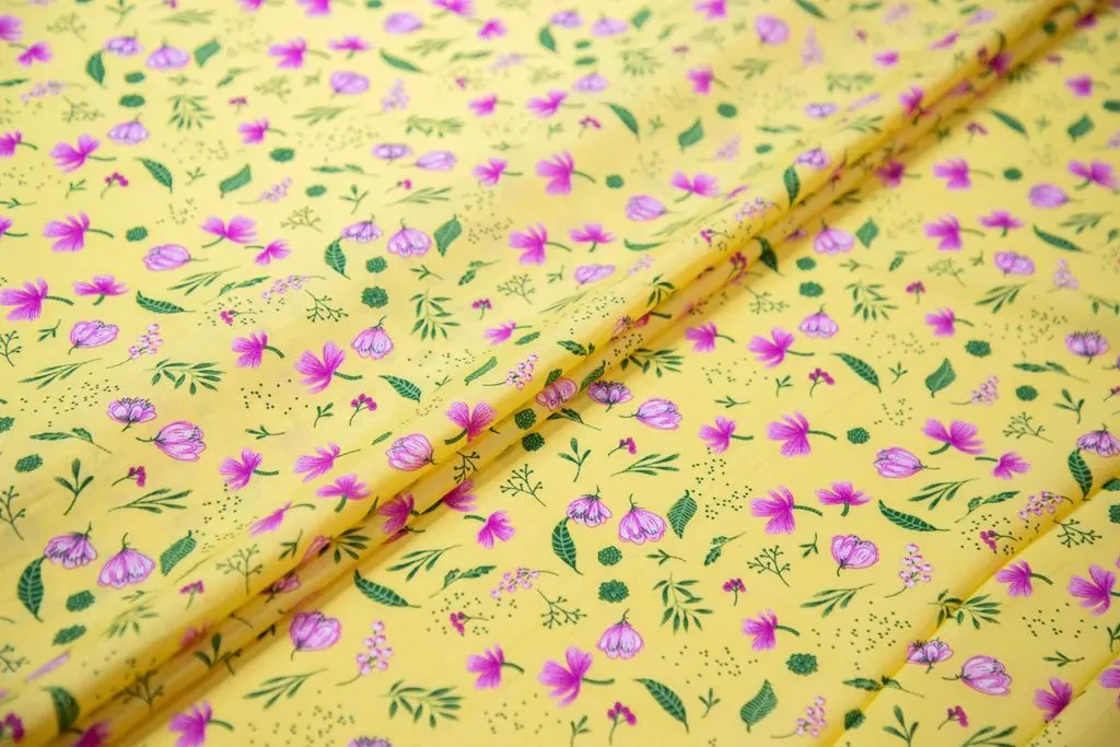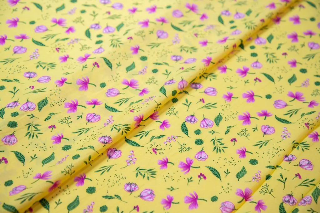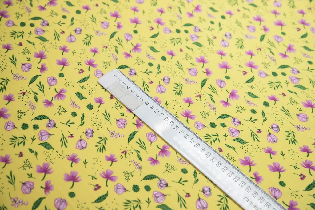 Штапель с рисунком "нежные цветочки", желтый фон