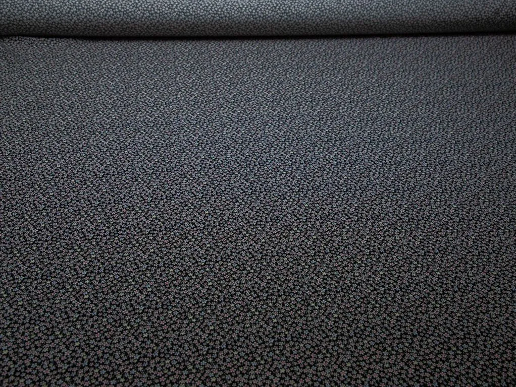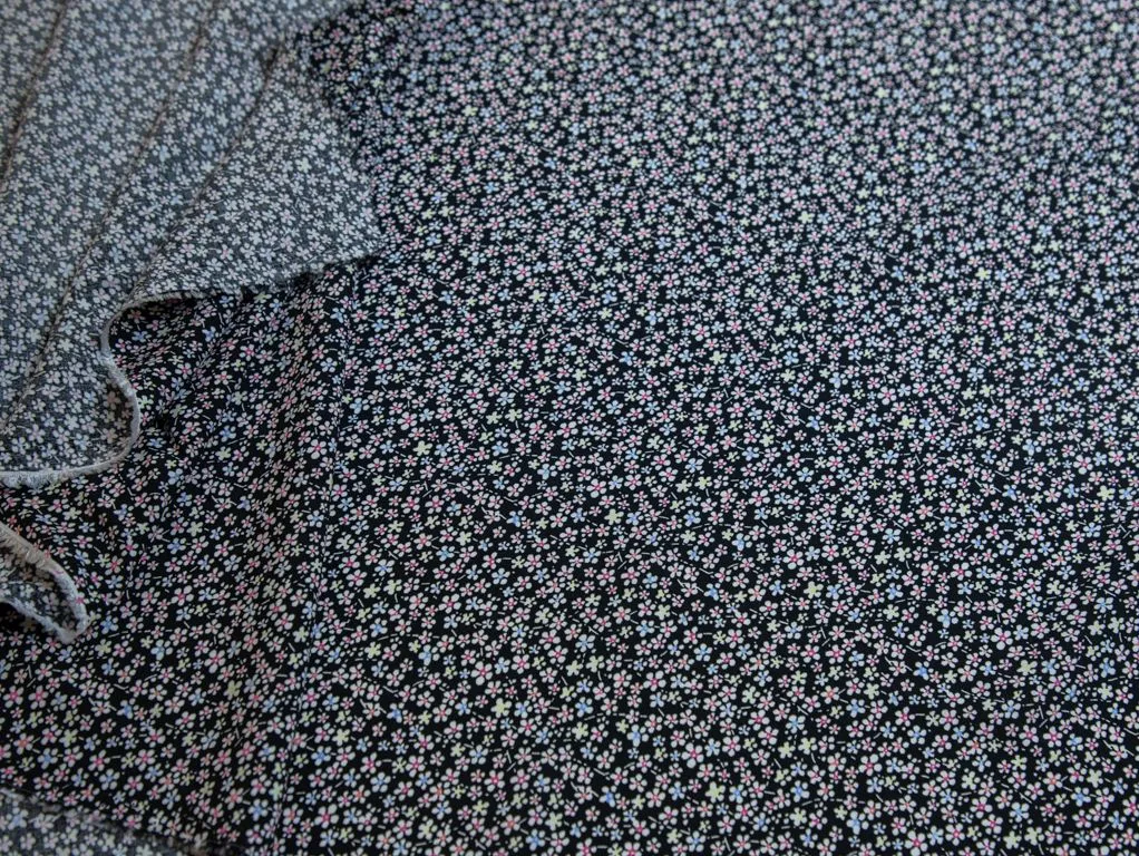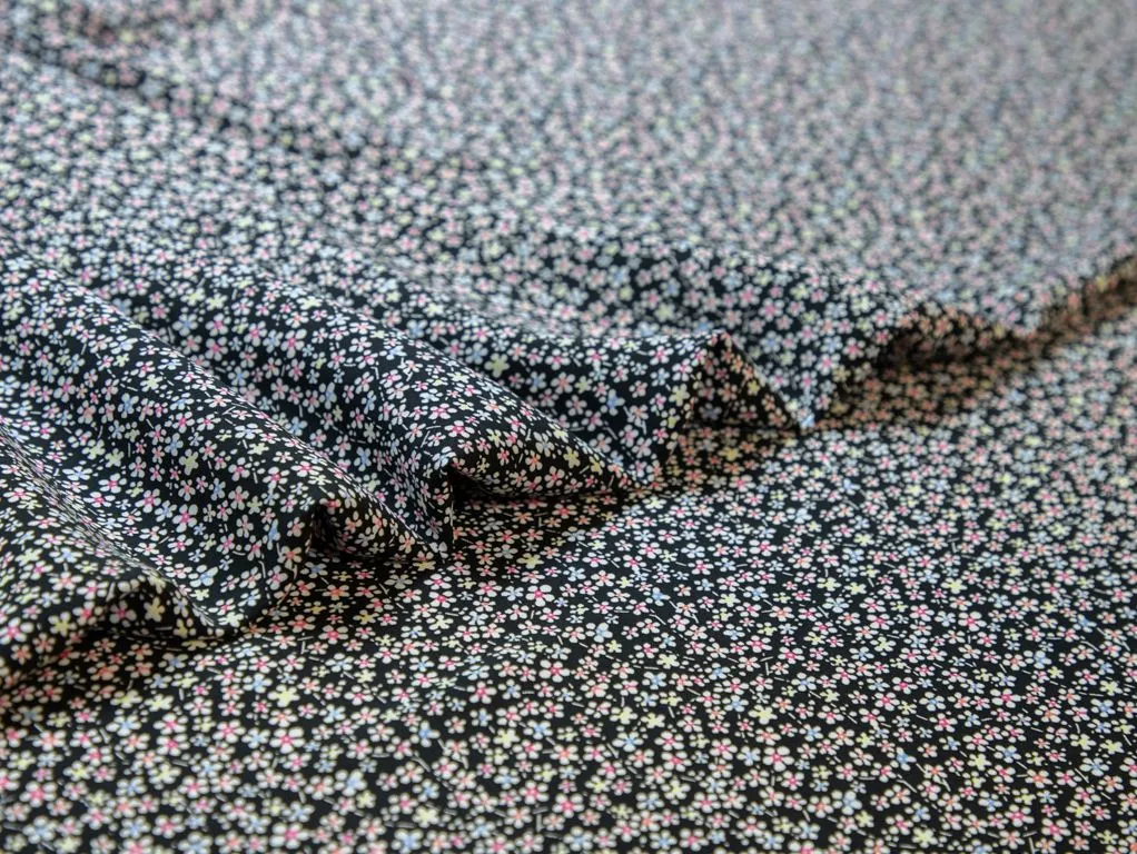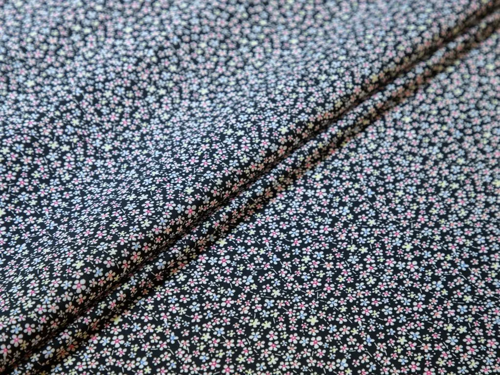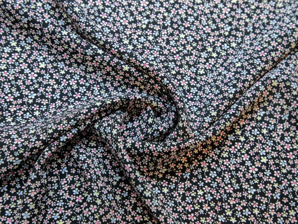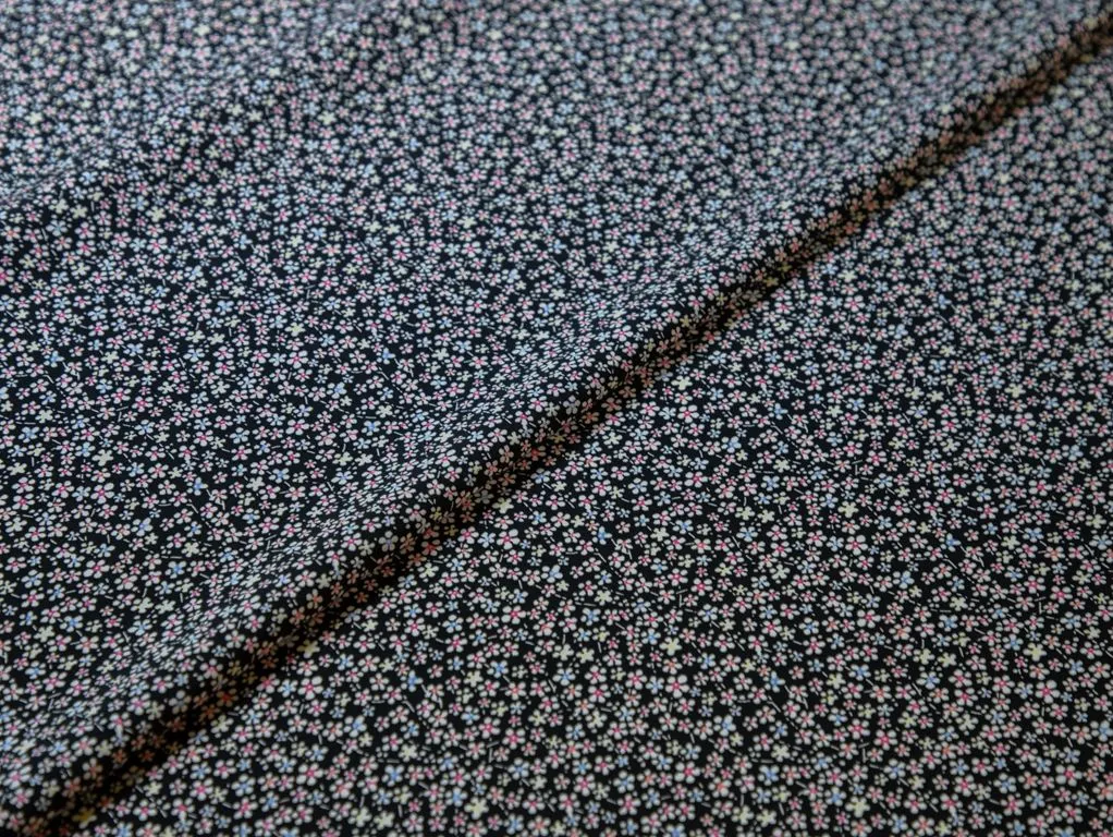 Штапель с рисунком "Россыпь цветочков", фон черный ALIITA