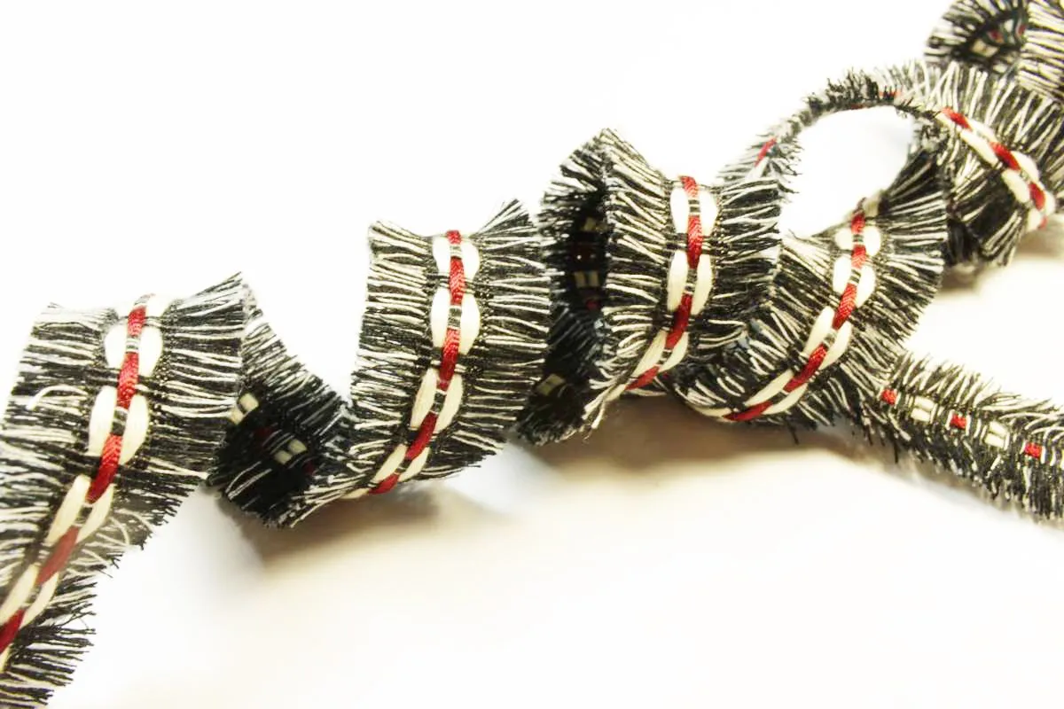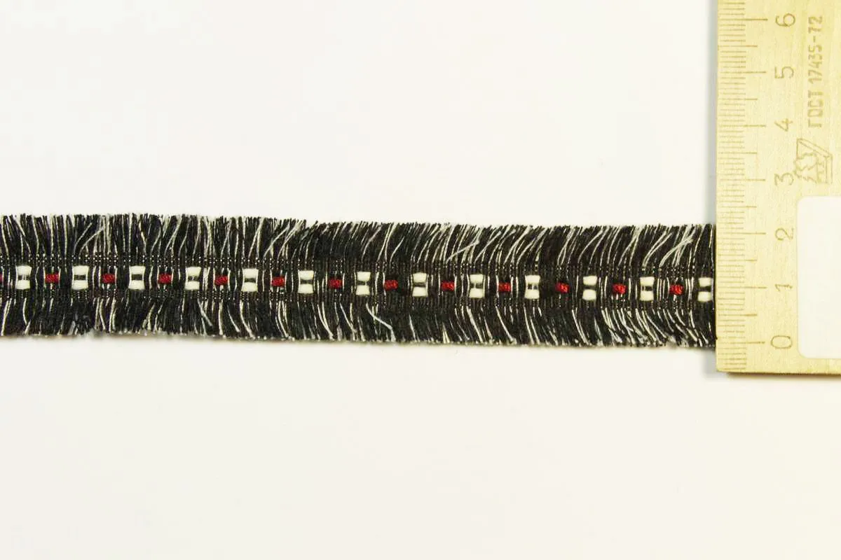 Тесьма декоративная, чёрно-белая с красной нитью, ширина 19 мм