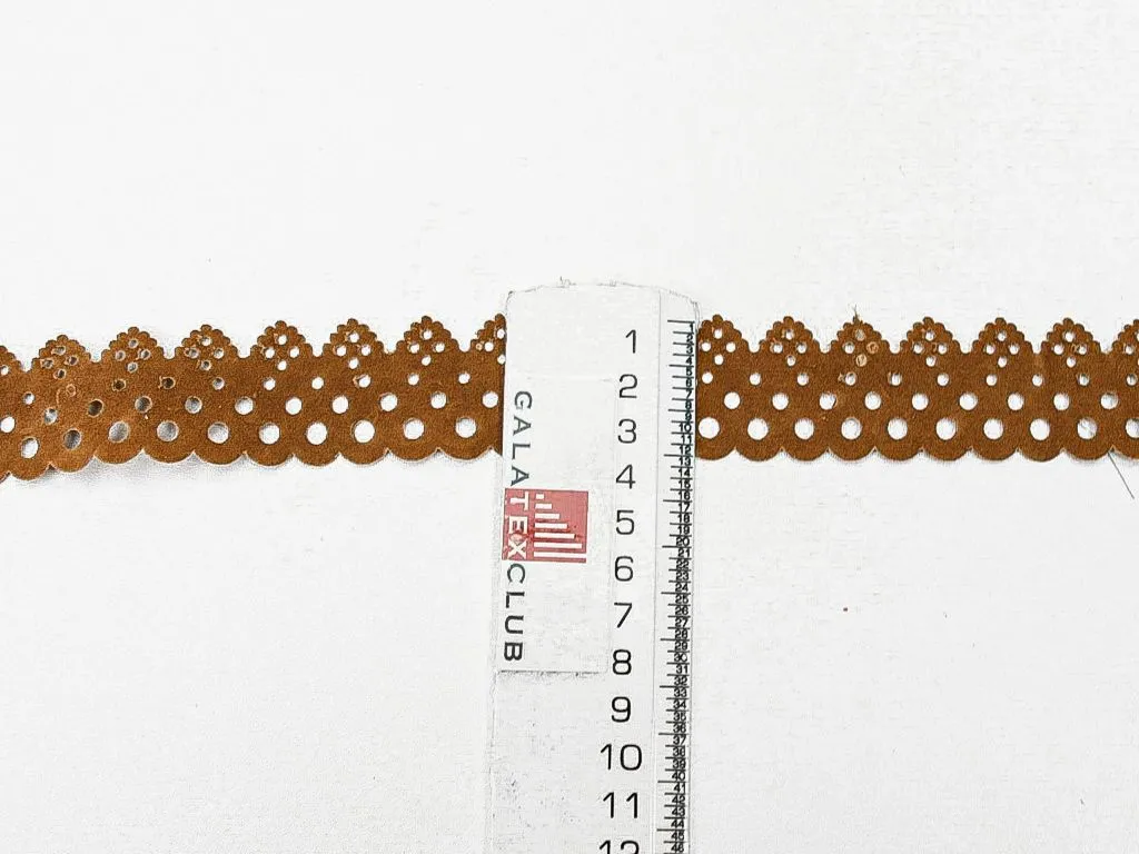Тесьма декоративная из искусственной замши, с перфорацией, коричневого цвета, ширина 33 мм