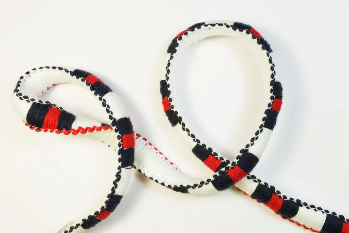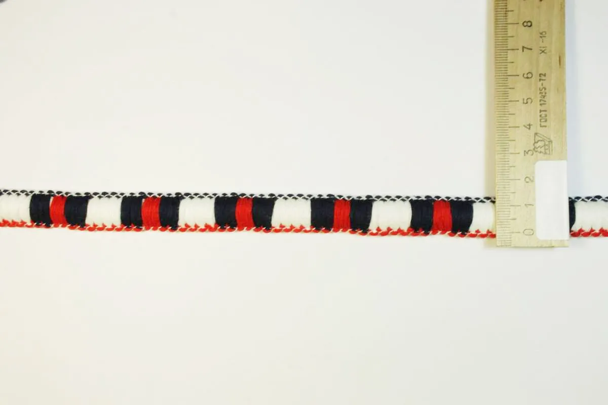 Тесьма декоративная, объёмной вязки, красного, синего и белого цветов. Ширина 15 мм
