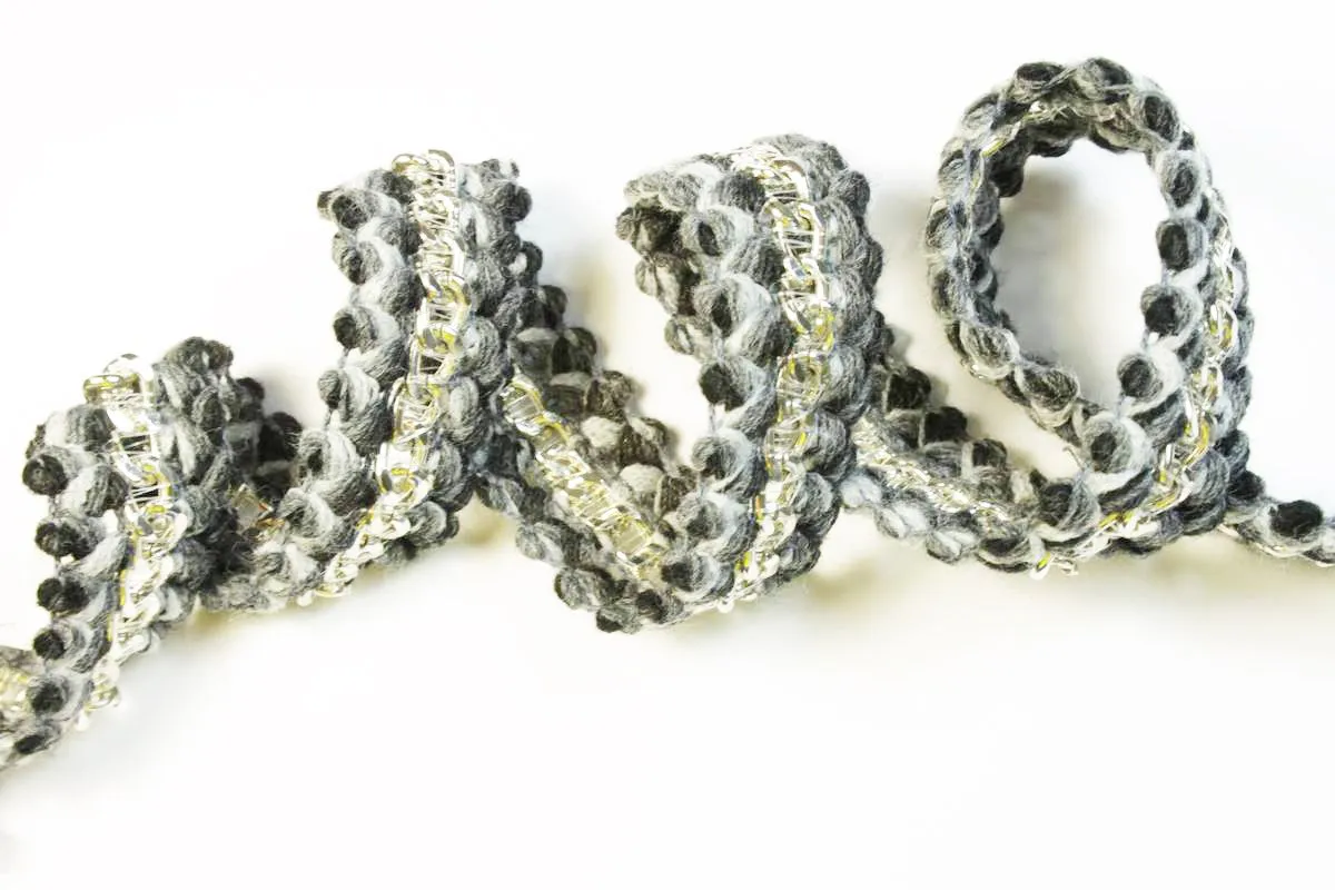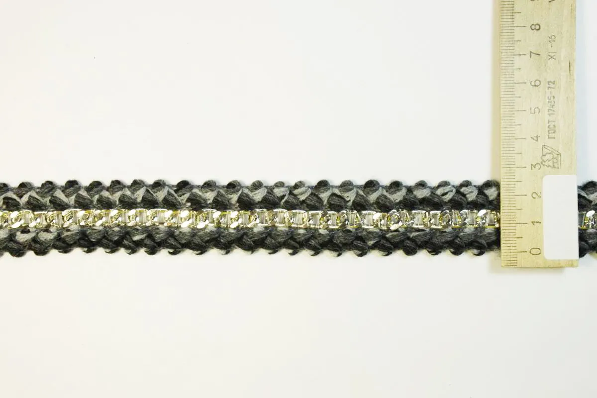 Тесьма декоративная с цепочкой, чёрно-серого цвета, ширина 28 мм