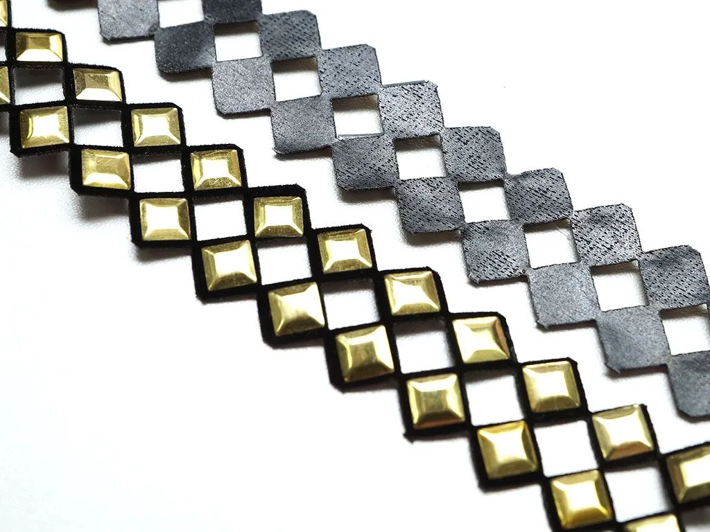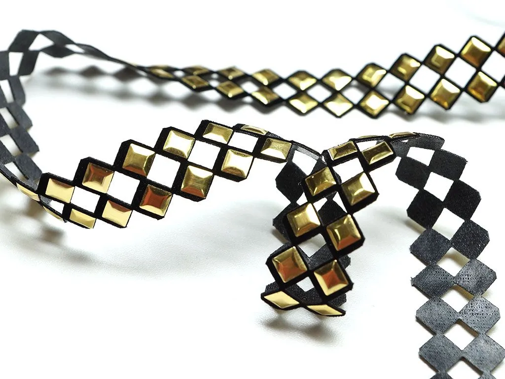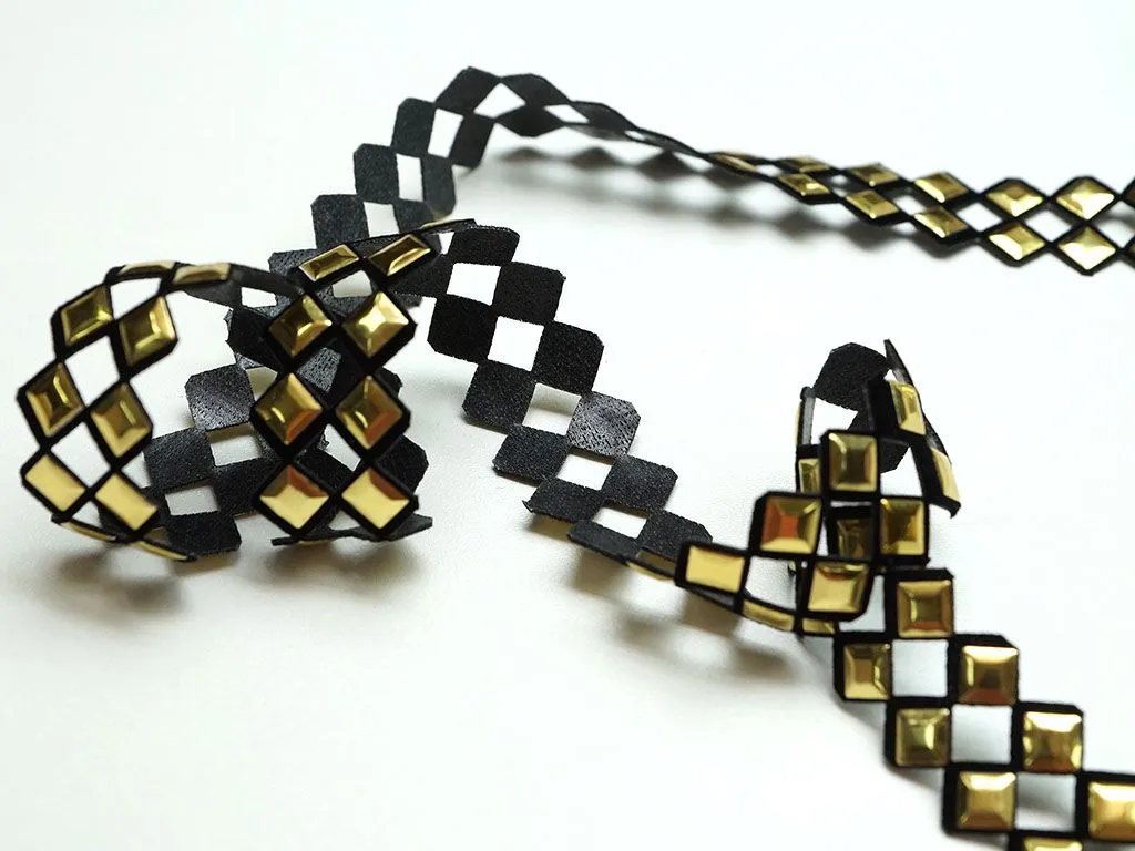 Тесьма декоративная, термоклеевая, цвет чёрный/золото, ширина 23 мм