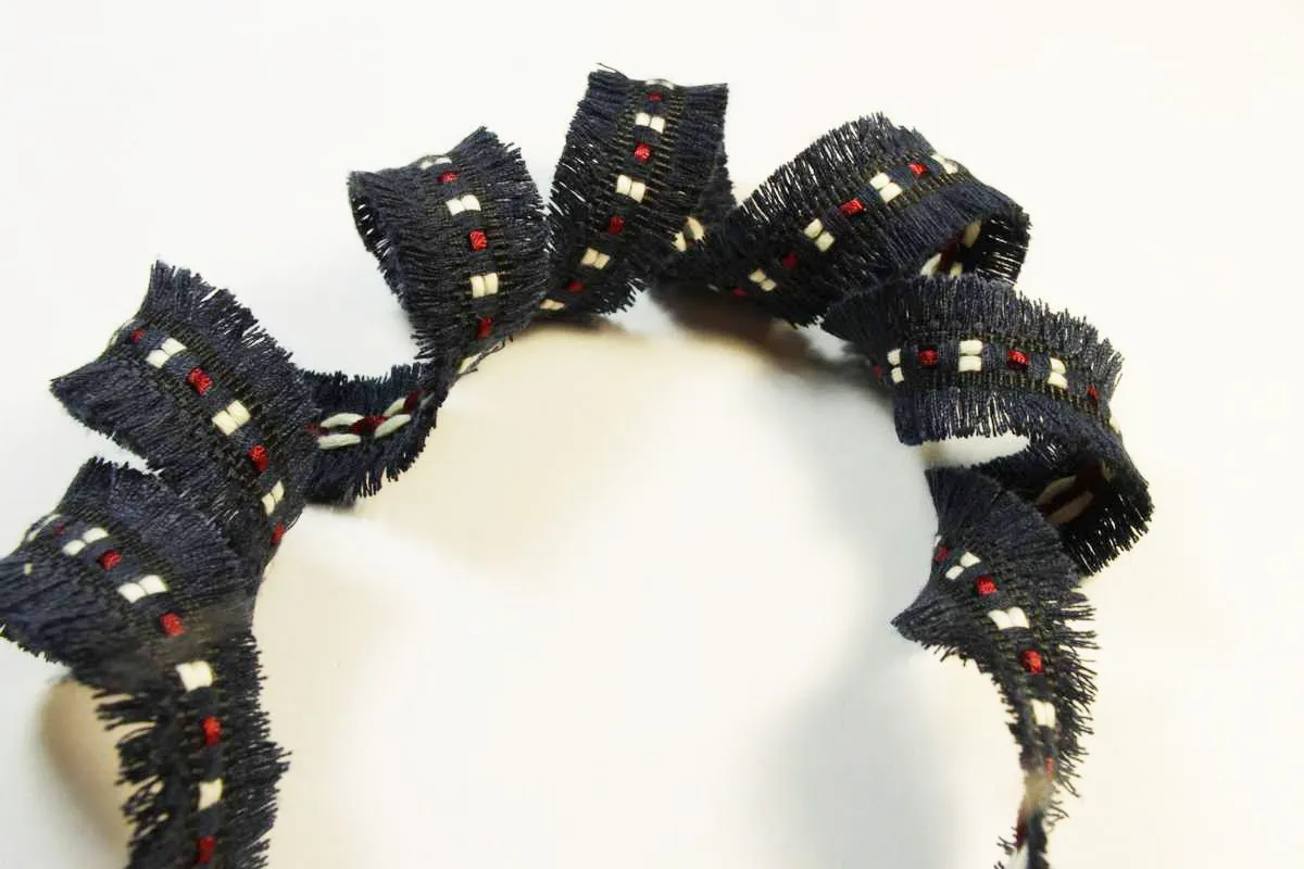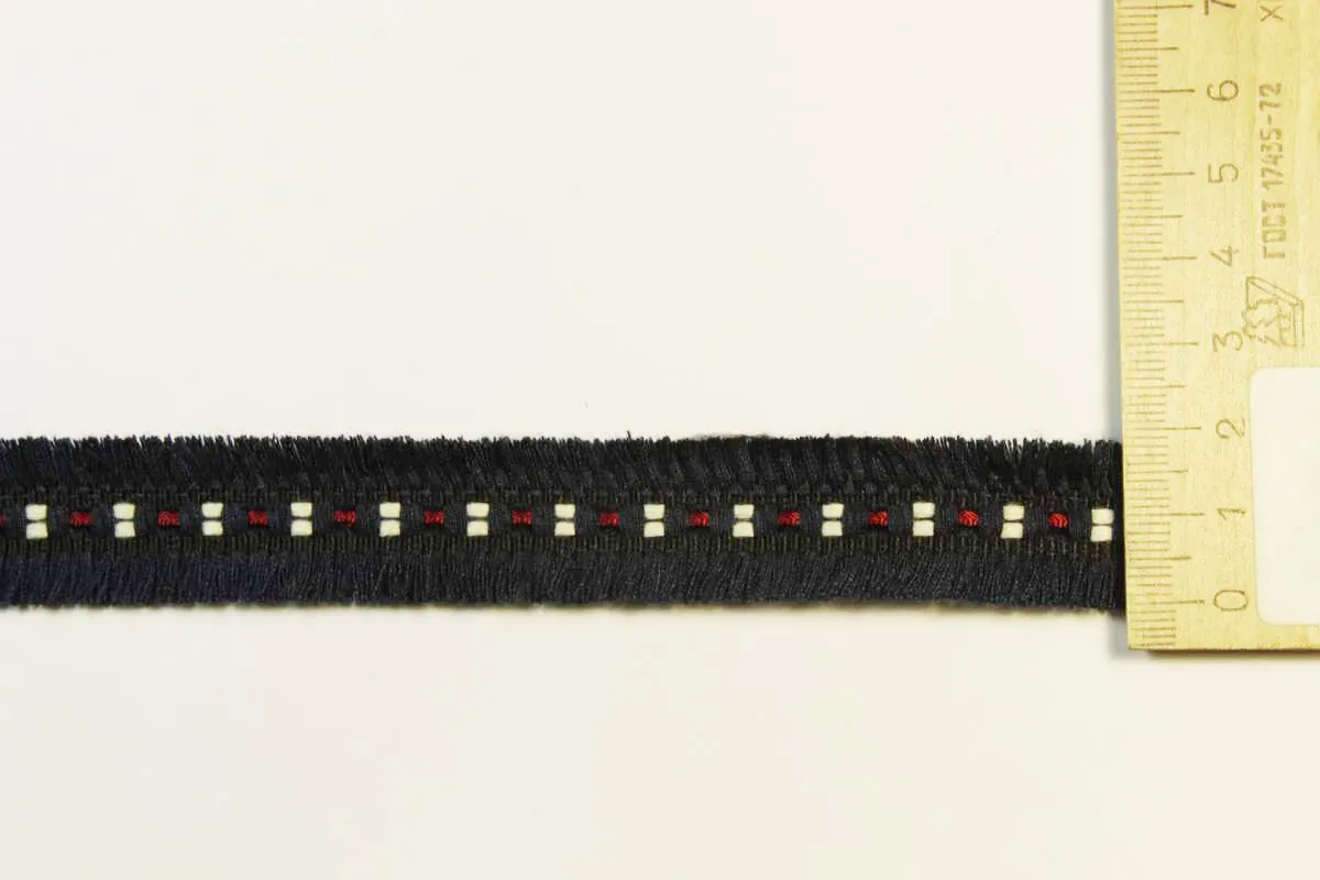 Тесьма декоративная, цвет тёмно-синий с белой и красной нитью, ширина 19 мм