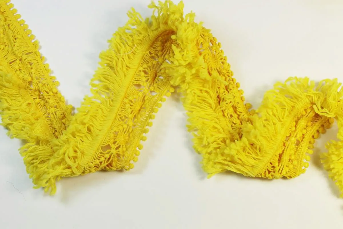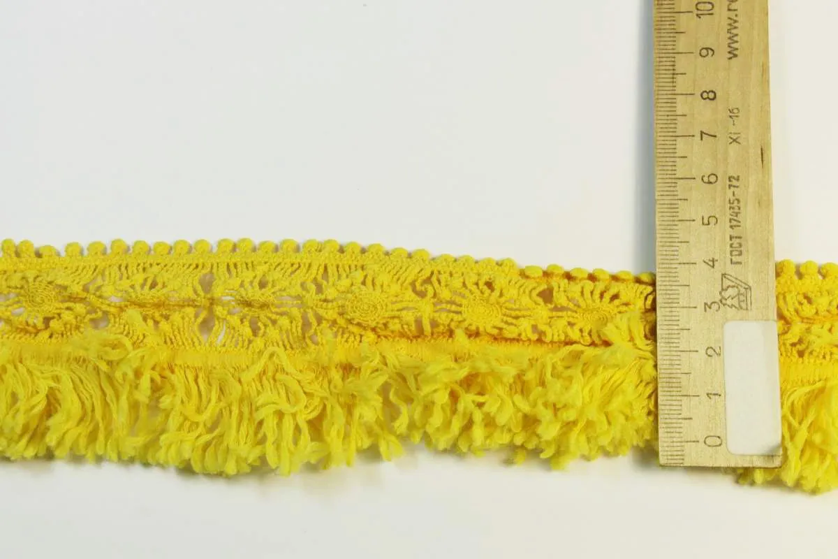 Тесьма декоративная, вязаная с бахромой, тёмно-жёлтого цвета, ширина 68 мм