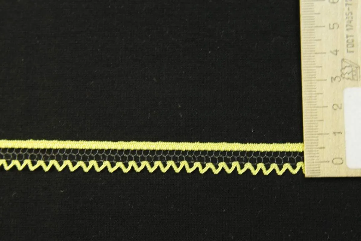 Тесьма кружевная стрейч, жёлтого цвета, ширина 10 мм