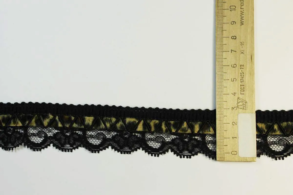 Тесьма-кружево, чёрного цвета с леопардовой вставкой, ширина 35 мм