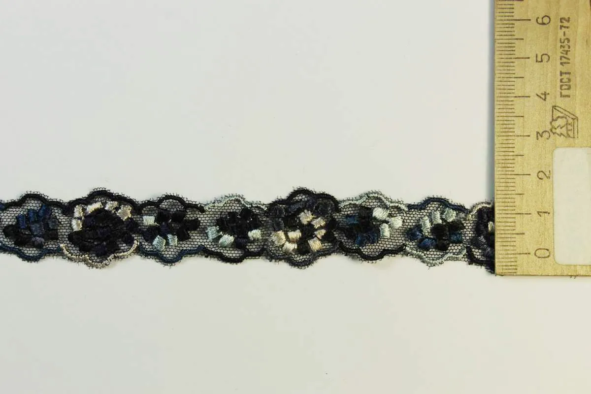 Тесьма-вышивка, стрейч, тёмно-синего цвета с узором, ширина 21 мм