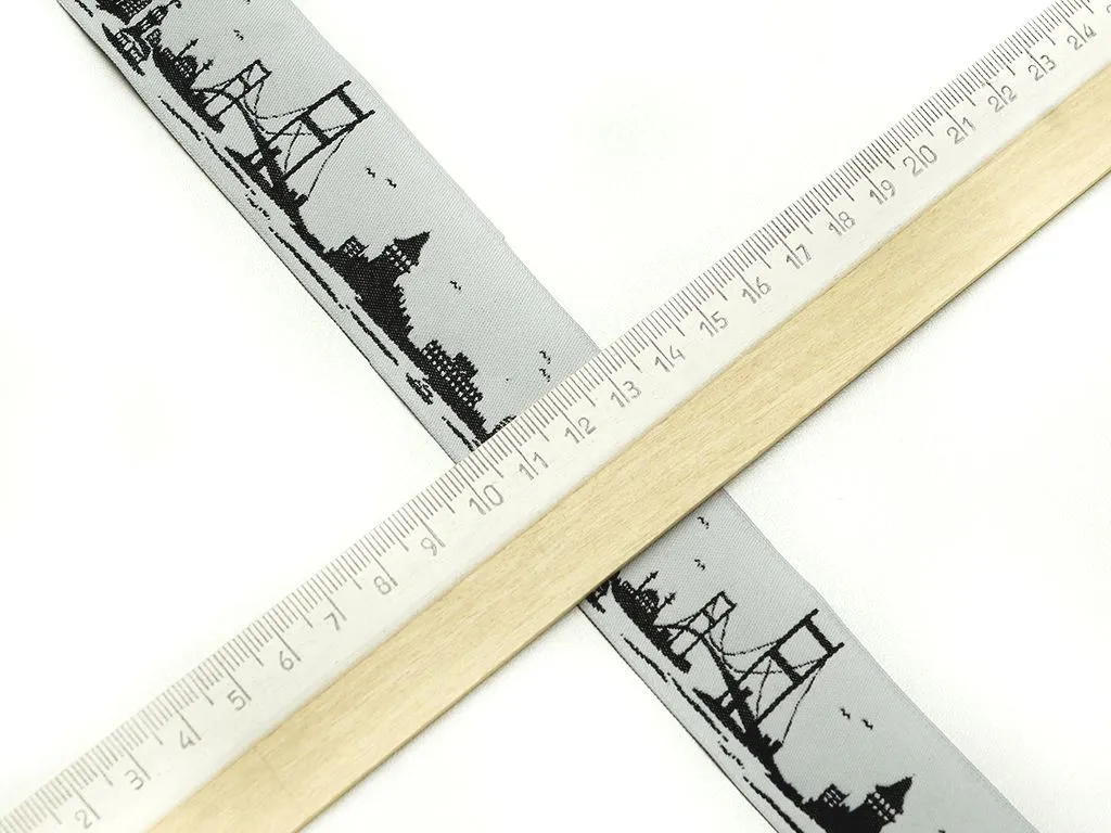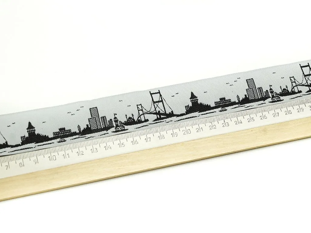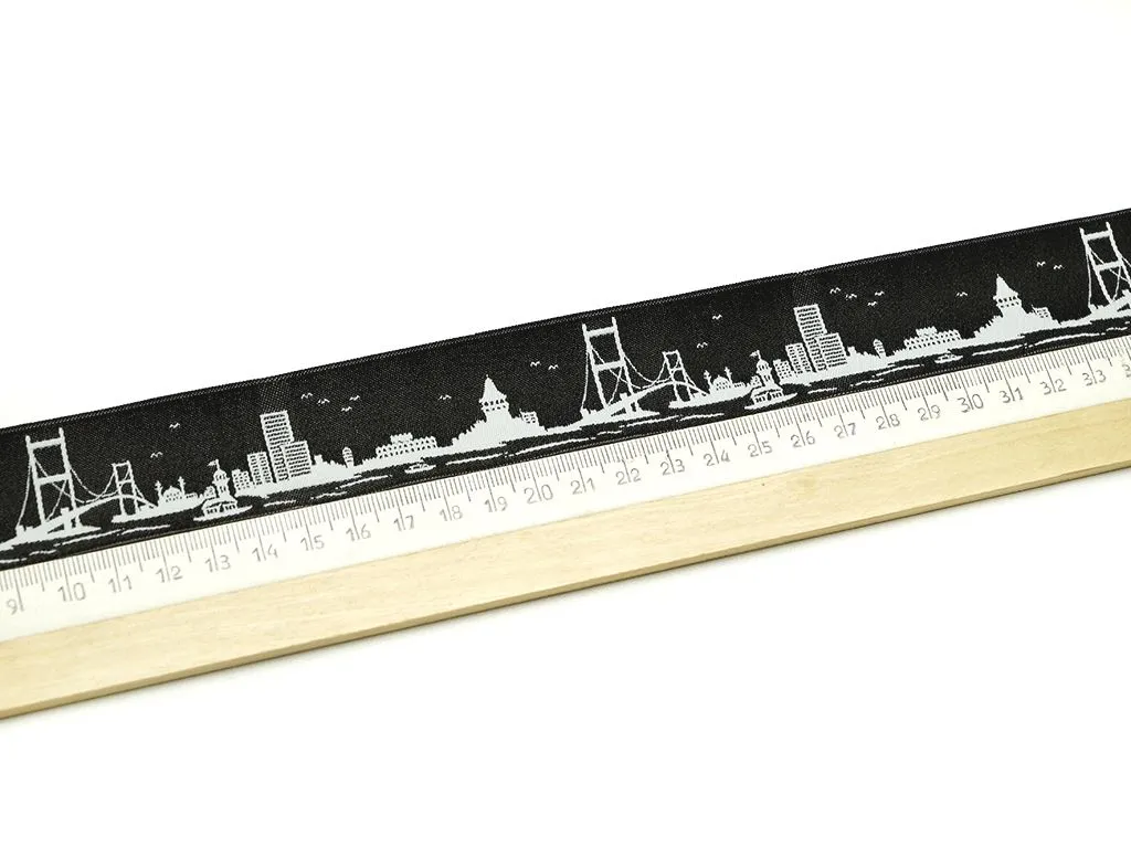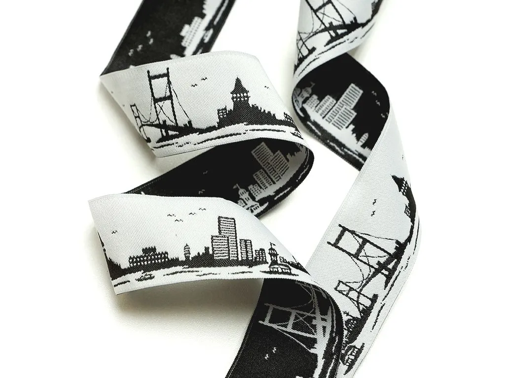 Тесьма жаккардовая "ГОРОД", цвет белый/чёрный, ширина 35 мм