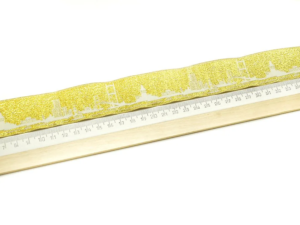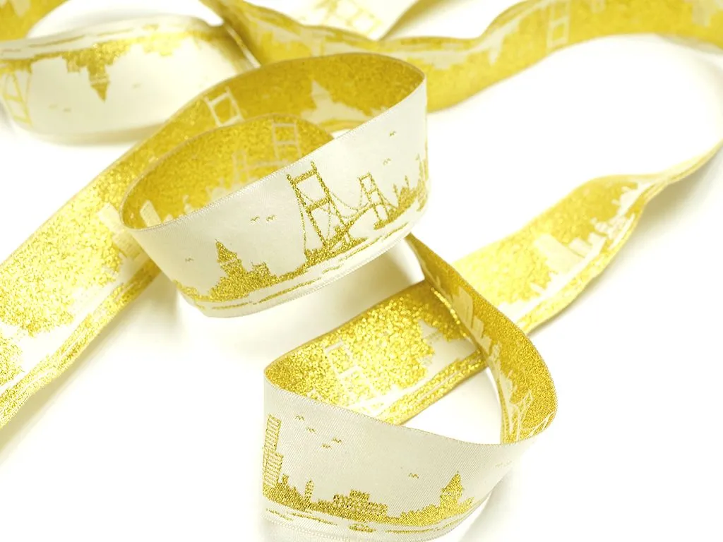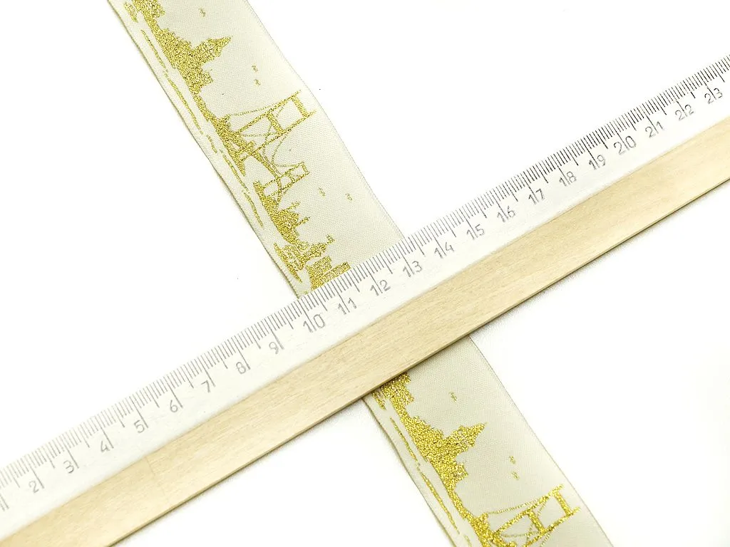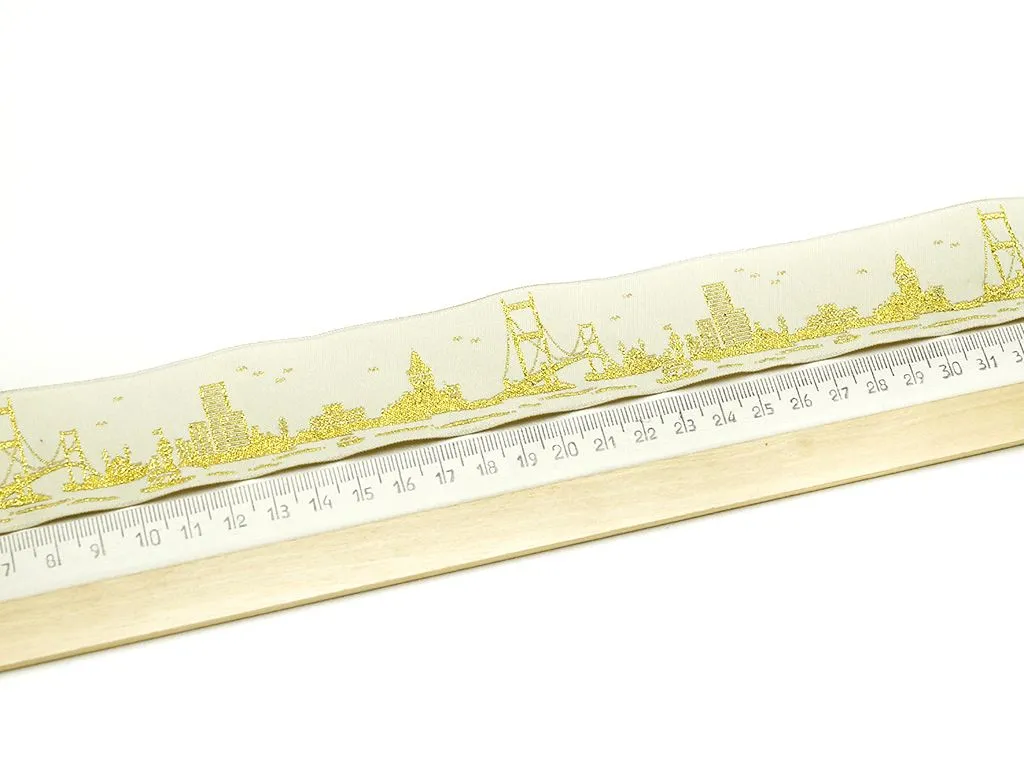 Тесьма жаккардовая "ГОРОД", цвет белый/золото, ширина 35 мм