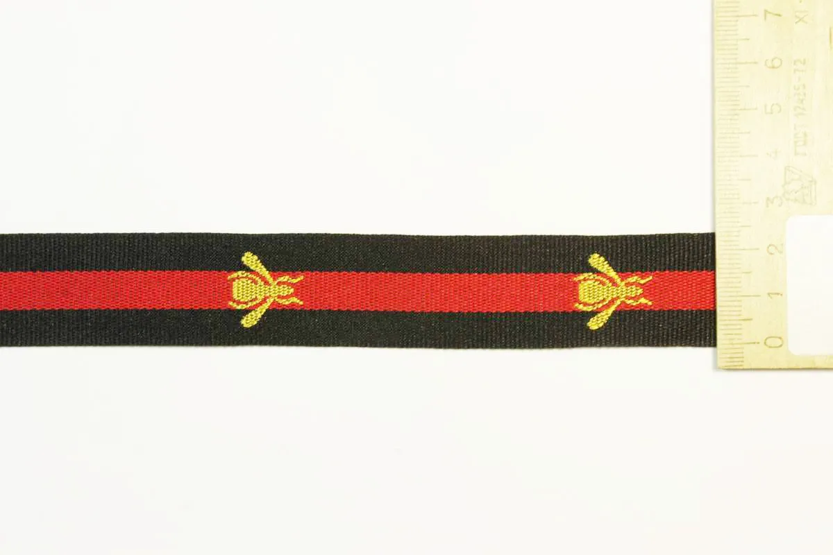 Тесьма жаккардовая "ОСА" цвет чёрный/красный, ширина 25 мм
