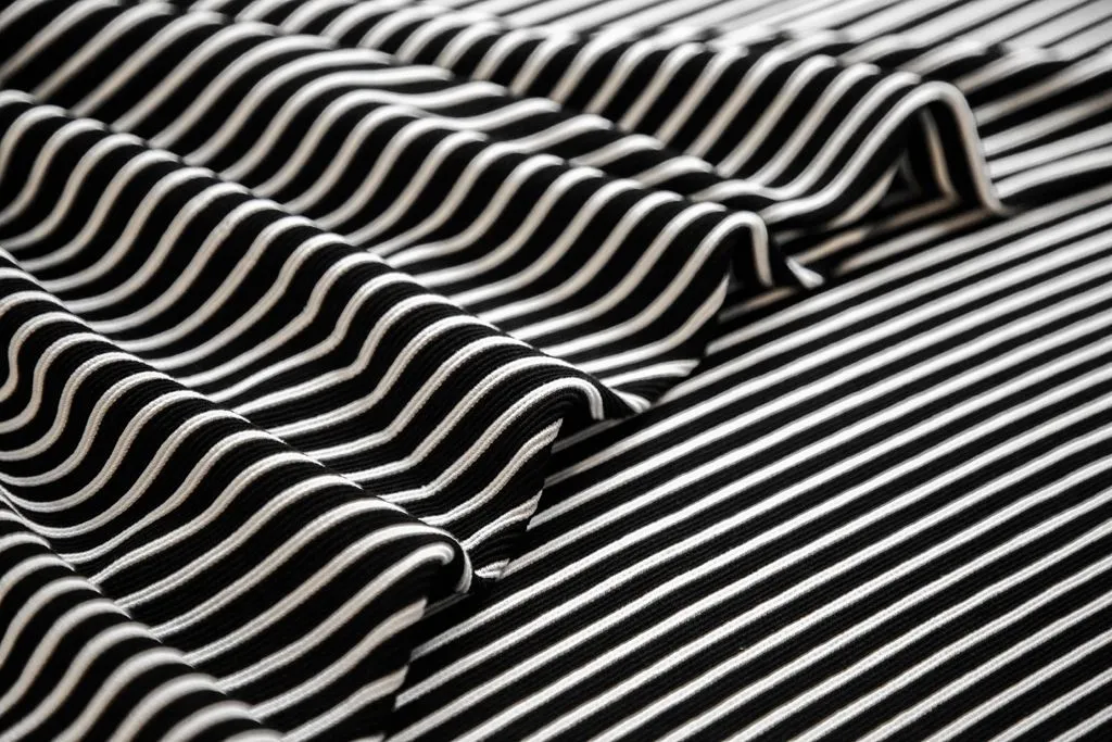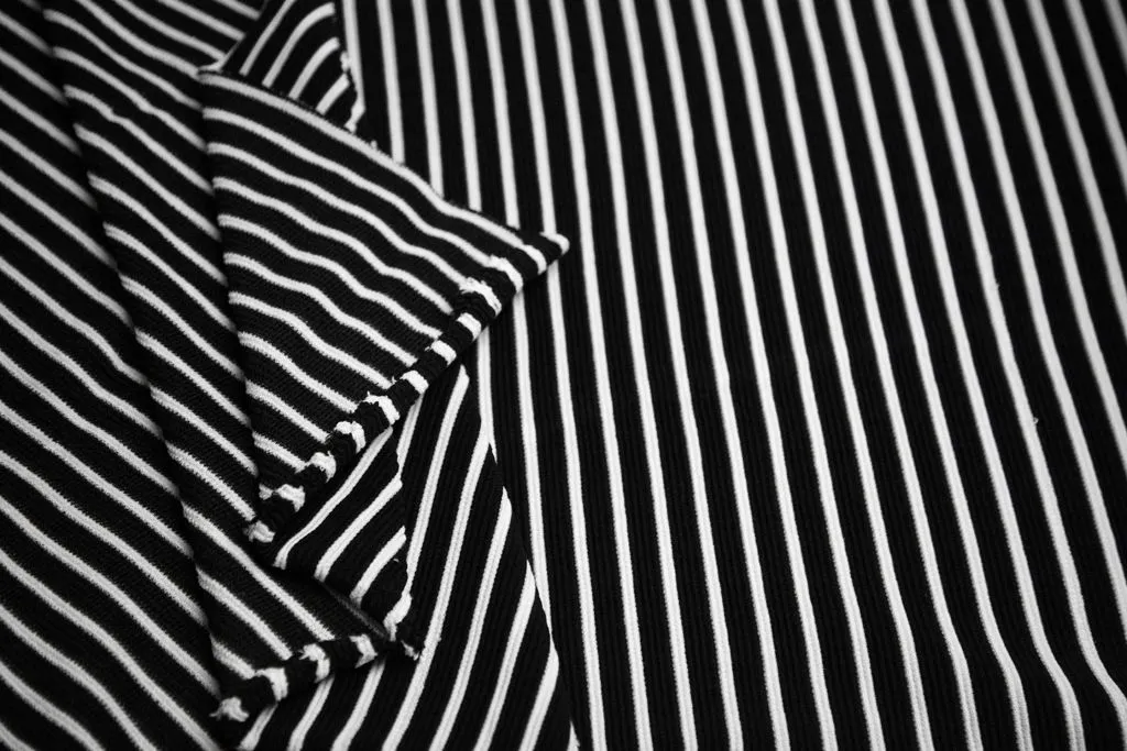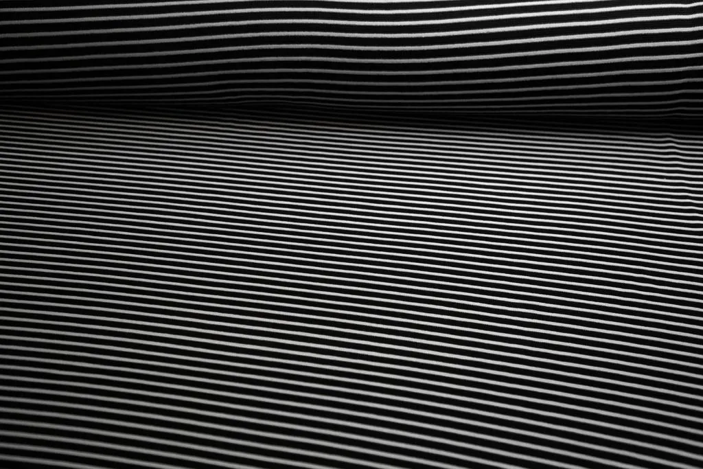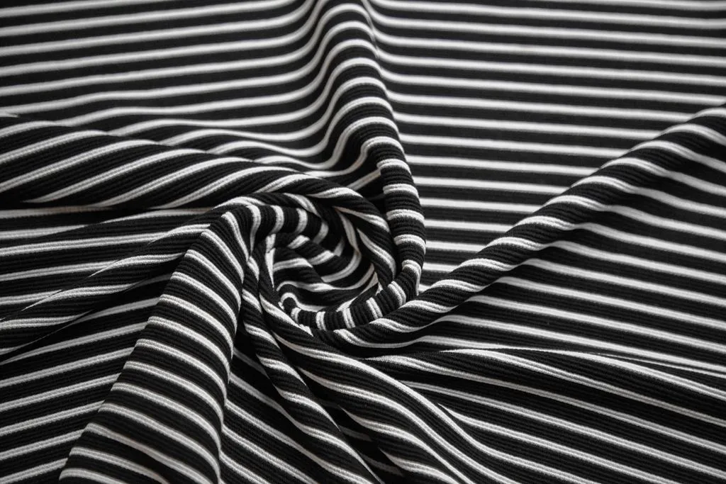 Трикотаж в горизонтальную полоску, черно-белый цвет