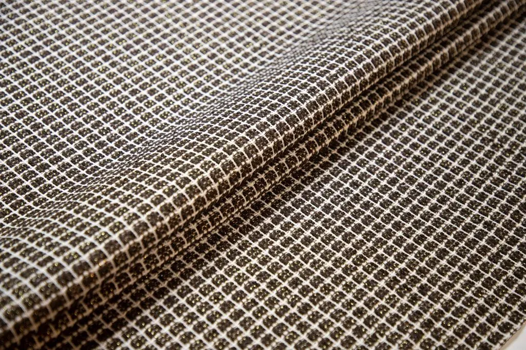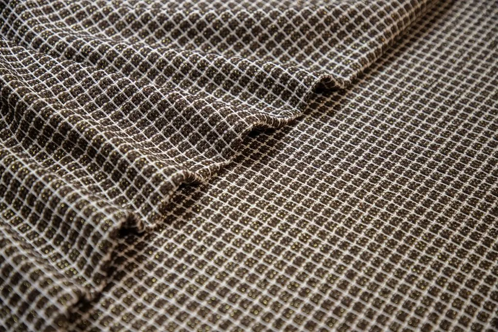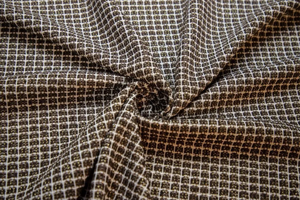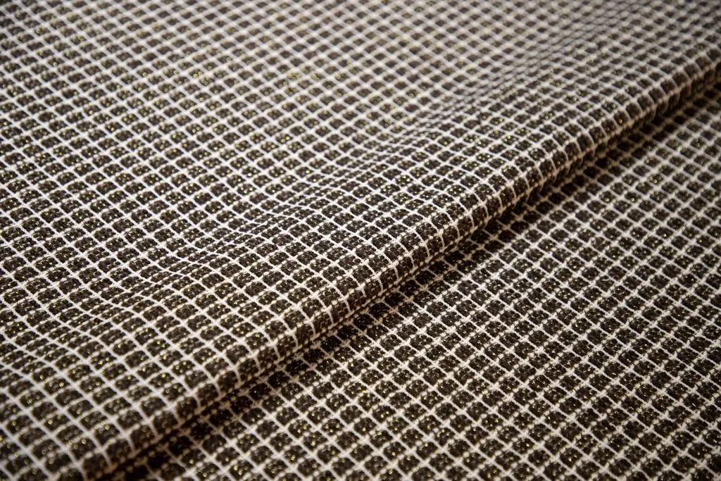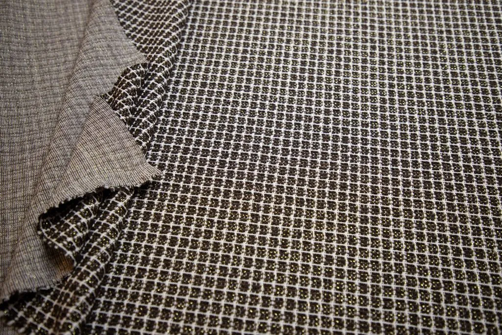 Трикотаж жаккардовый с люрексом, кофейно-белая клетка