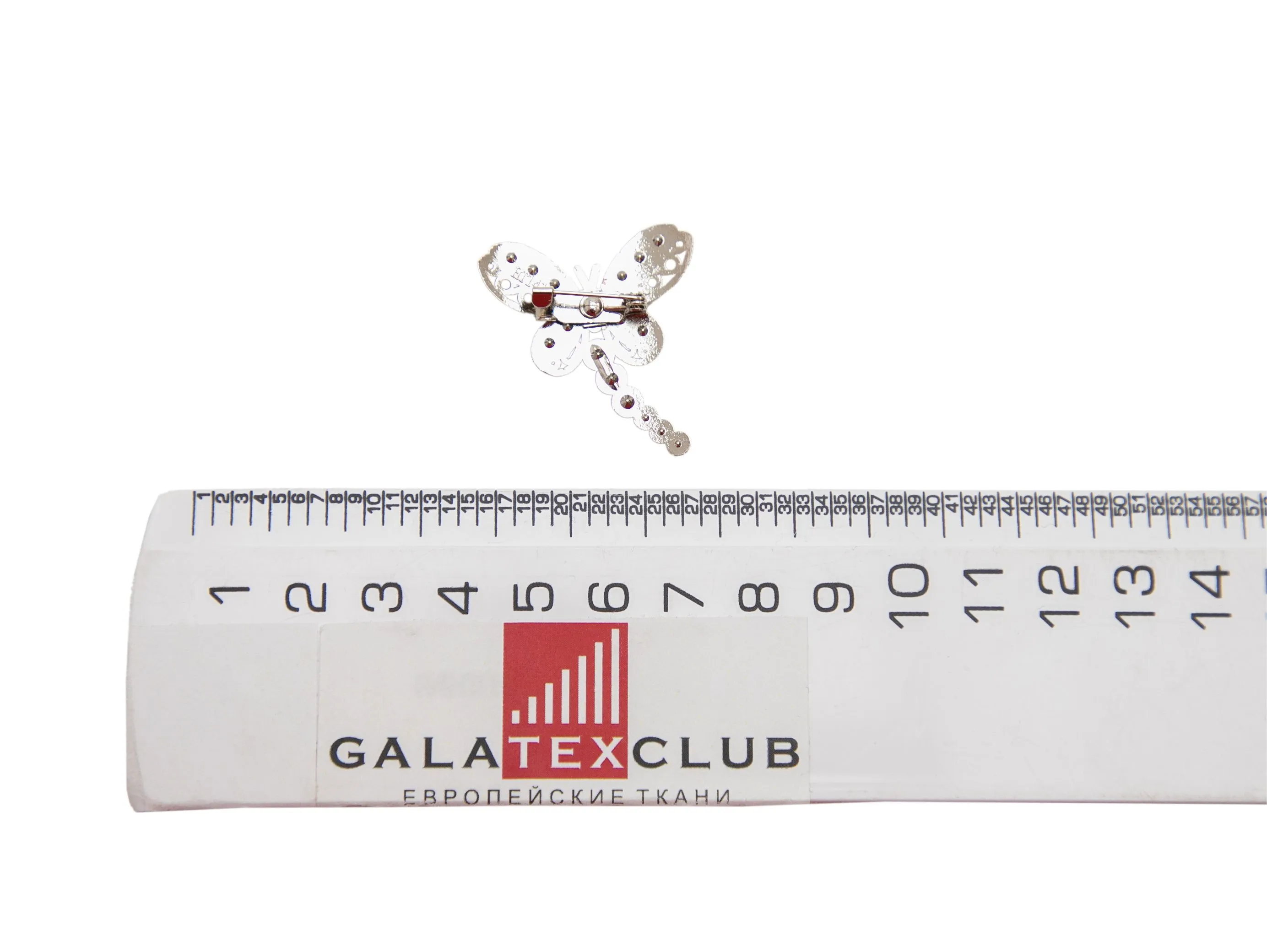 Украшение - брошь "Стрекоза", никель/мультиколор стразы, 32*29 мм
