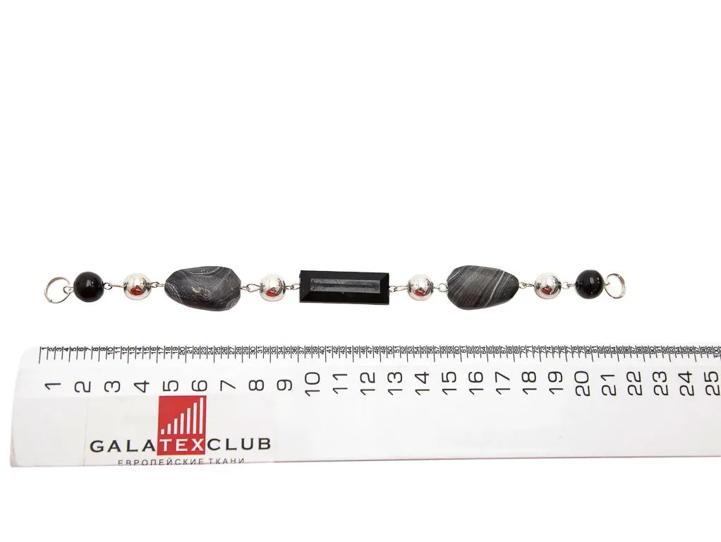 Украшение на пришив БУСЫ, чёрно-серый камень, длина 215 мм