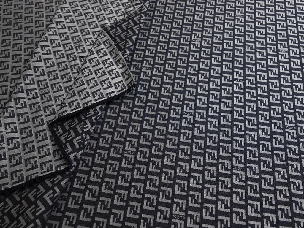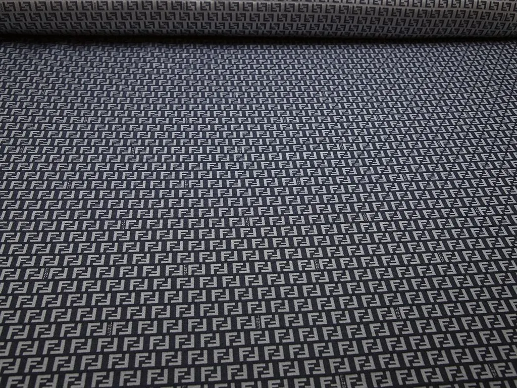 Двухсторонняя жаккардовая ткань с рисунком "Буквы", цвет сине-белый