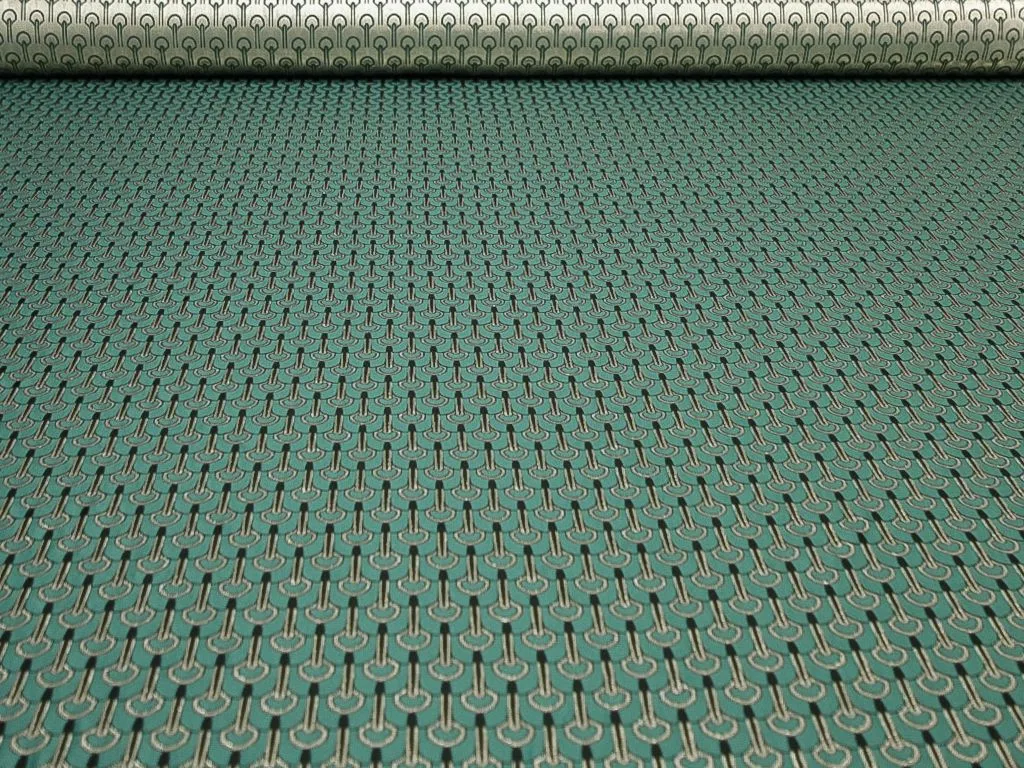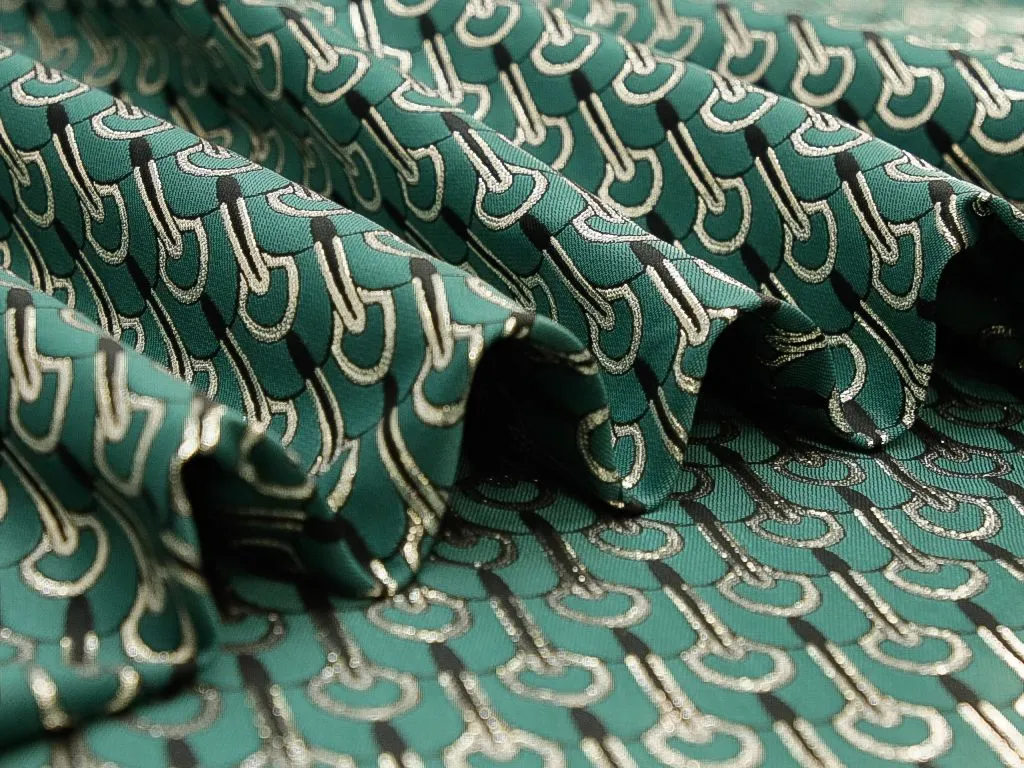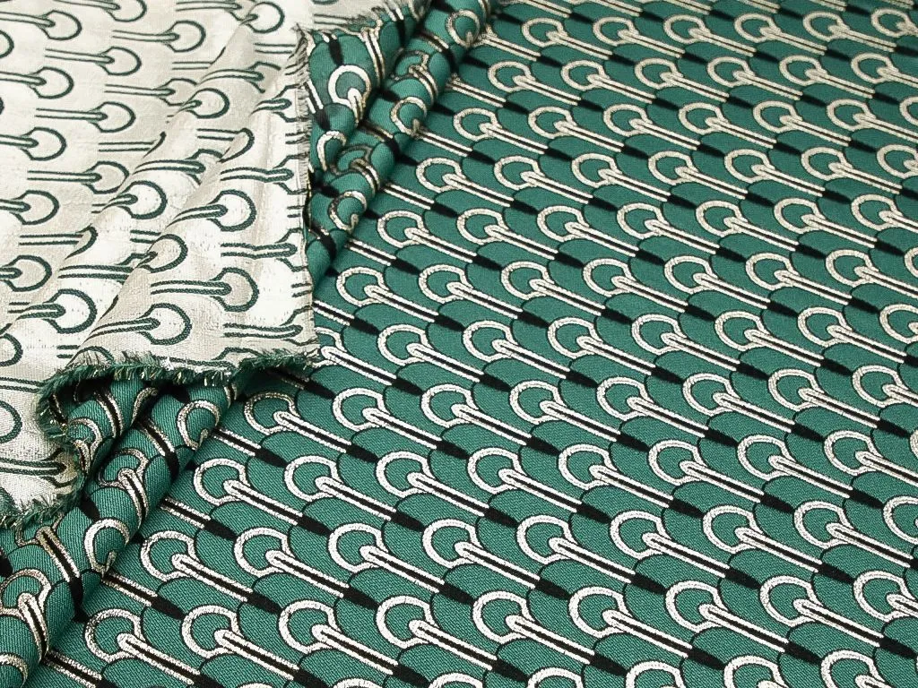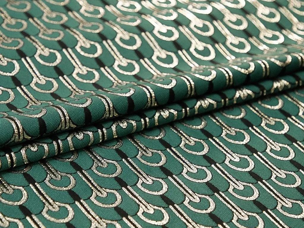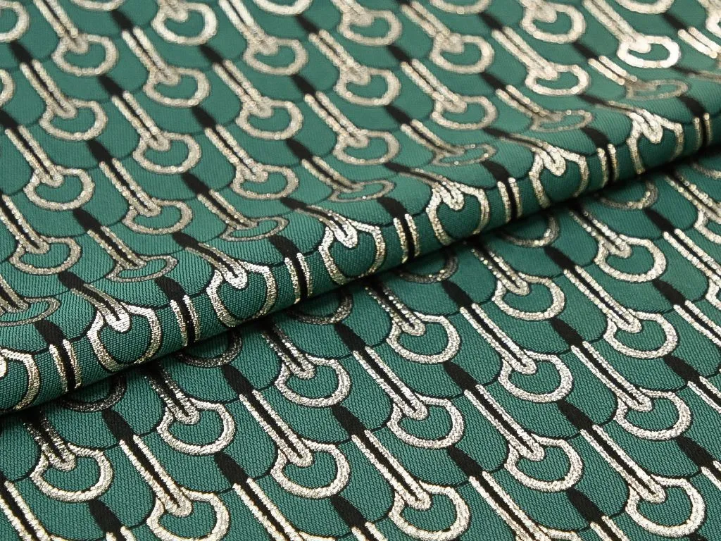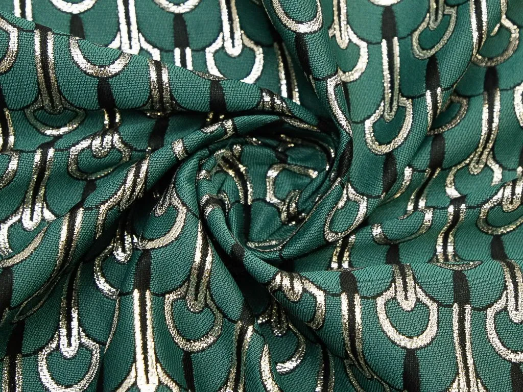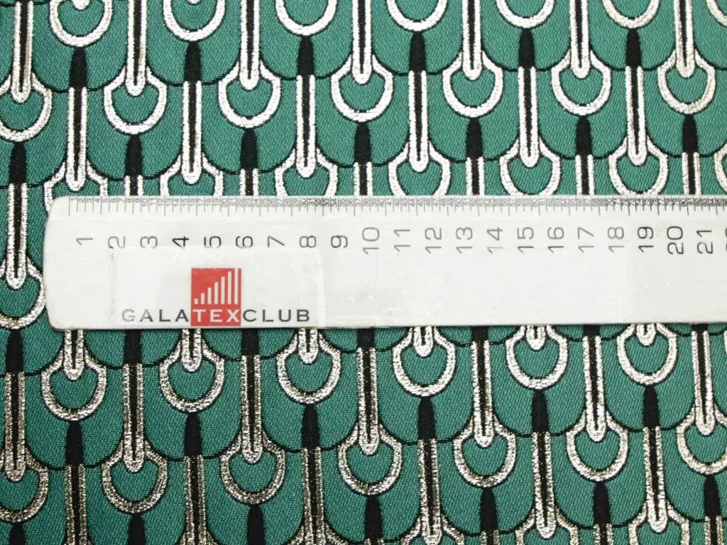 Жаккардовая ткань с серебристым шитьем на изумрудном фоне