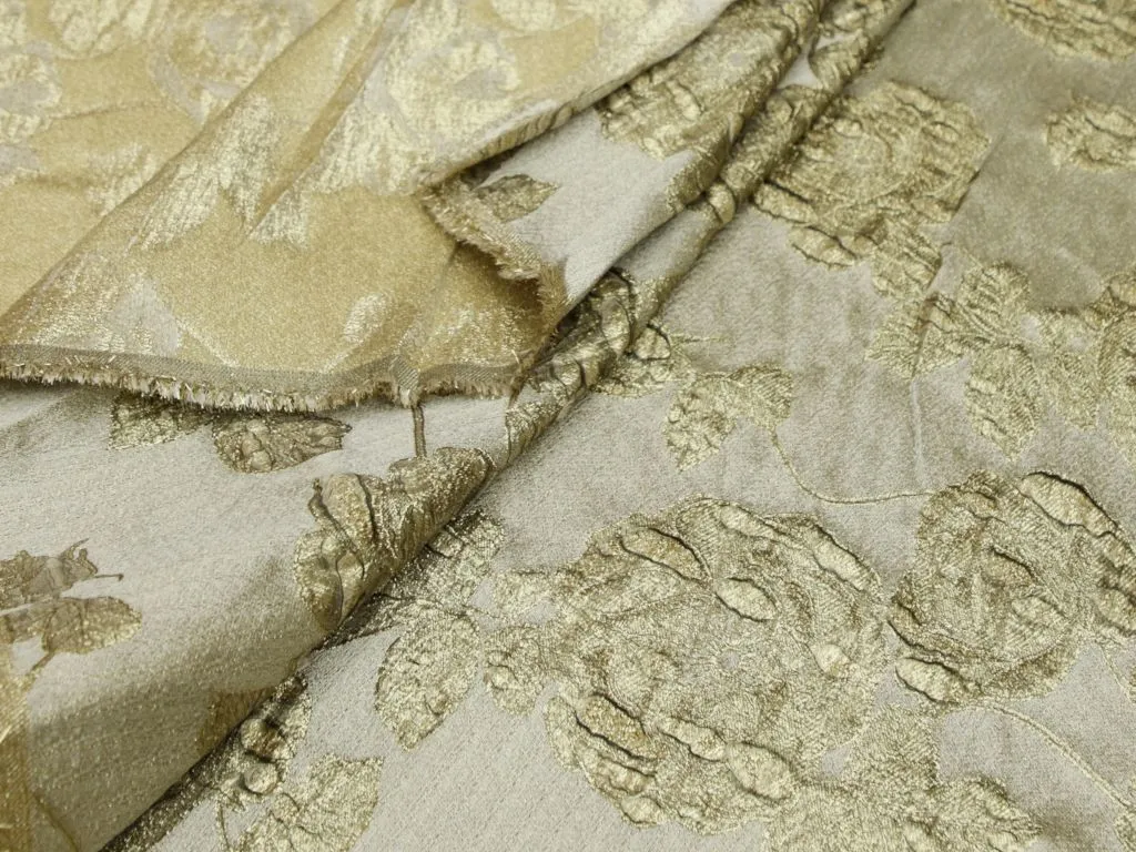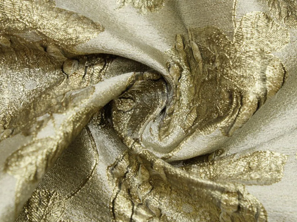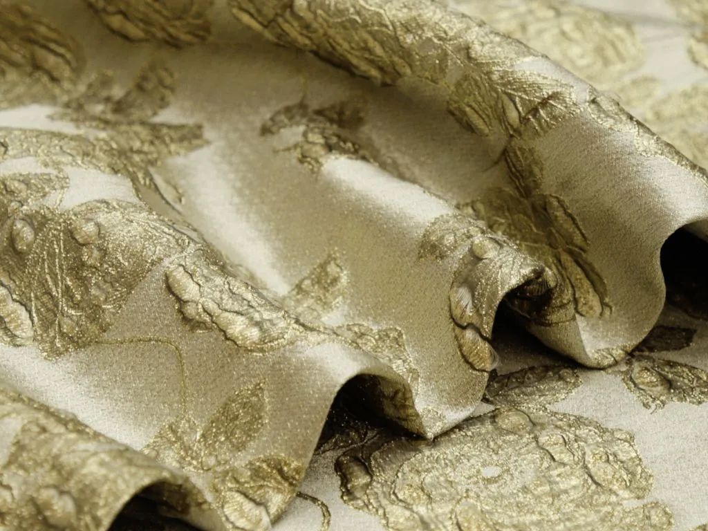 Золотой жаккард с объёмными цветами